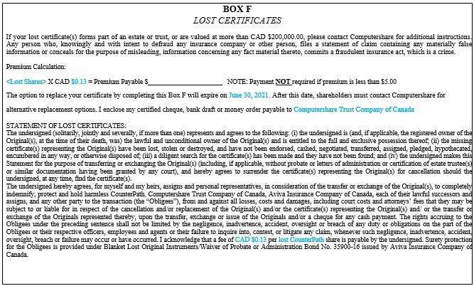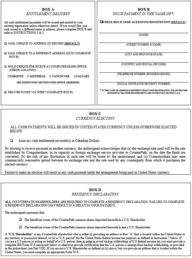 On behalf of the CounterPath board of directors, we thank you for your support of CounterPath Corporation and appreciate your consideration of this matter.