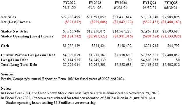 | o | LAGGING STADCO acquisition is still not fully integrated and remains an underperformer after over three years of ownership, according to Company SEC filings. In August 2021, the STADCO acquisition was funded by an equity capital raise at $4.40 per-share, which is 22% higher than the most recent raise.6 TechPrecision paid $10.2 million for Stadco, which never turned a profit and generated operating losses totaling $8.3 million since the purchase.7 |