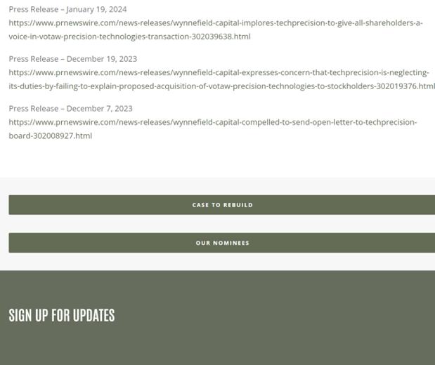 The Wynnefield Group also released a detailed investor presentation highlighting the many reasons why the TechPrecision Board should be held accountable and why the election of both of the Wynnefield Group’s highly qualified and exceptional director nominees is so important for TechPrecision stockholders.