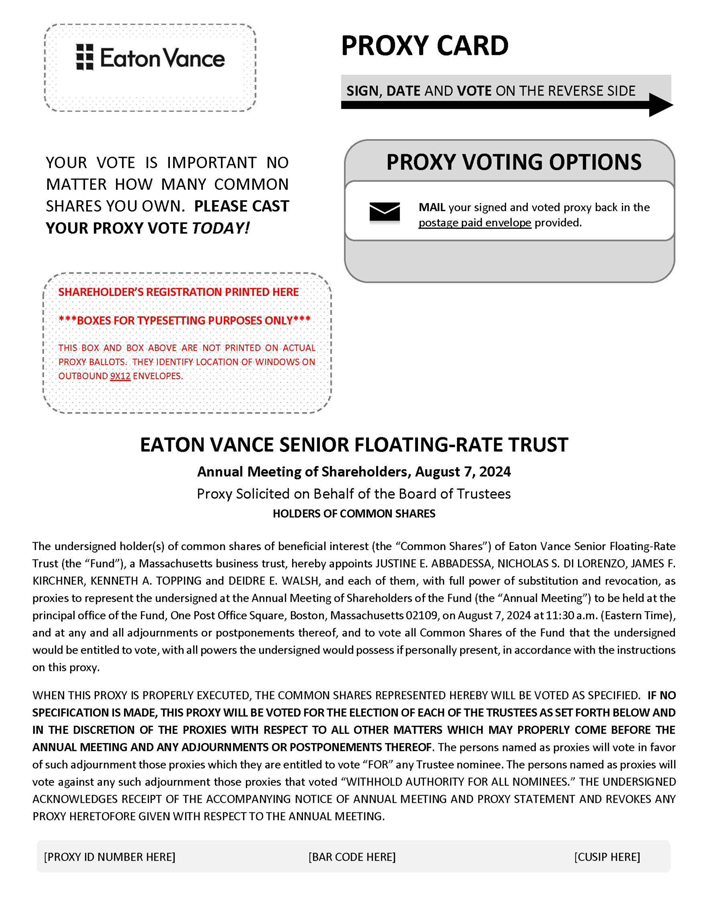 Important Notice Regarding the Availability of Proxy Materials for the Annual Meeting of Shareholders to be Held on Wednesday, August 7, 2024: The Notice of Annual Meeting of Shareholders, Proxy Statement, Proxy Card(s) and Shareholder Report(s) are available on the Eaton Vance website at https://funds.eatonvance.com/closed-end-fund-and-term-trust-documents.php.