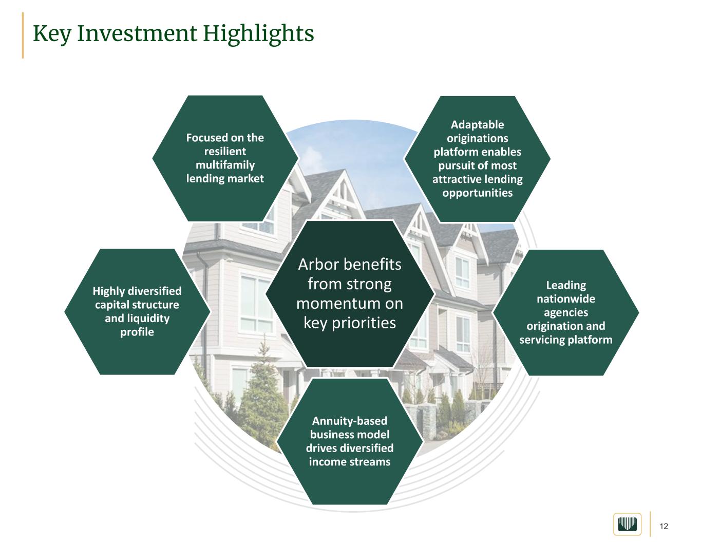 12 Key Investment Highlights Arbor benefits from strong momentum on key priorities Focused on the resilient multifamily lending market Adaptable originations platform enables pursuit of most attractive lending opportunities Leading nationwide agencies origination and servicing platform Annuity-based business model drives diversified income streams Highly diversified capital structure and liquidity profile