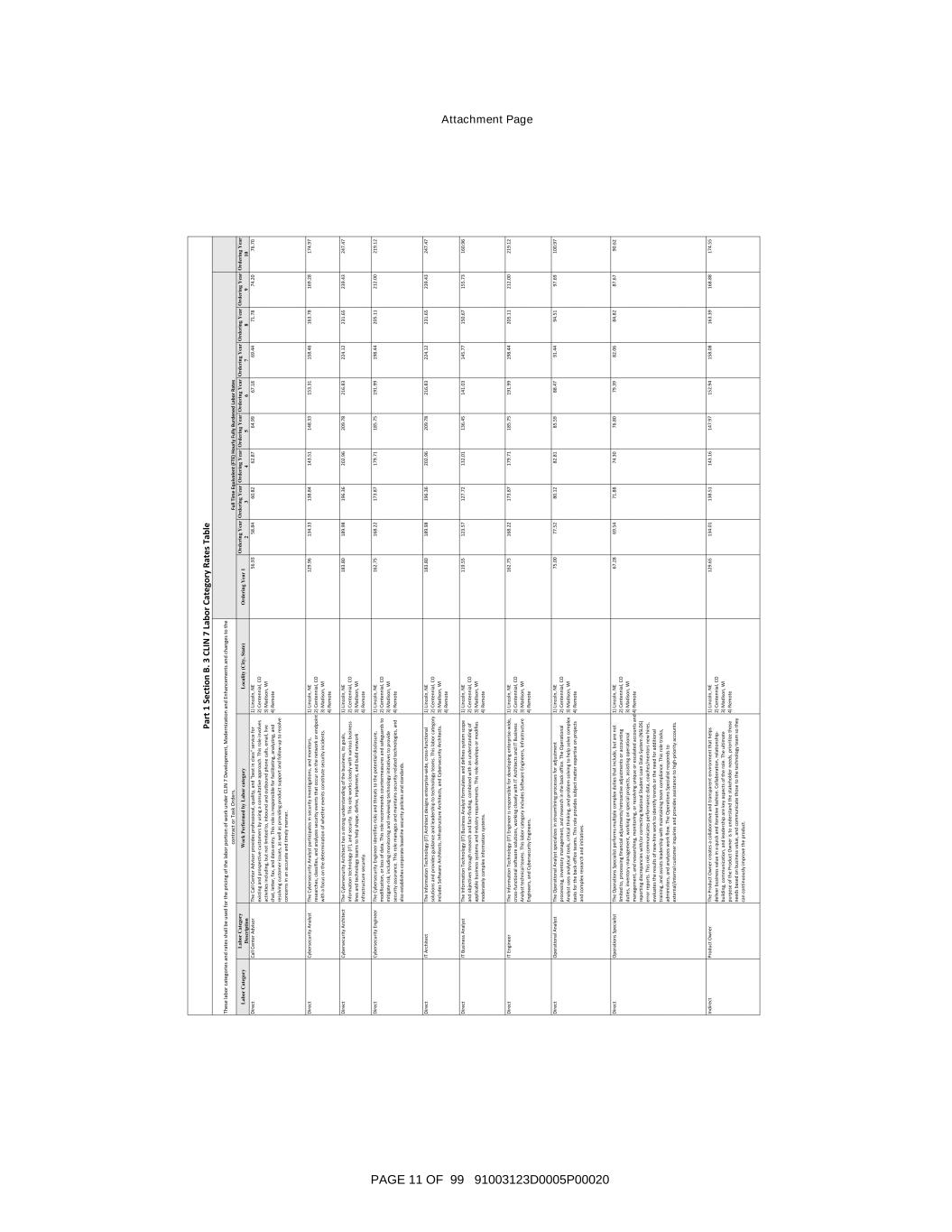 PAGE 11 OF 99 91003123D0005P00020 Attachment Page L ab or C at eg or y L ab or C at eg or y D es cr i p tio n W or k Pe rf or m ed b y L ab or c at eg or y L oc al ity (C ity , S ta te ) O rd er in g Y ea r 1 O rd er in g Y ea r 2 O rd er in g Y ea r 3 O rd er in g Y ea r 4 O rd er in g Y ea r 5 O rd er in g Y ea r 6 O rd er in g Y ea r 7 O rd er in g Y ea r 8 O rd er in g Y ea r 9 O rd er in g Y ea r 10 Di re ct Ca ll Ce nt er A dv iso r Th e Ca ll Ce nt er A dv iso r p ro vi de s p ro fe ss io na l, qu al ity , a nd " be st in c la ss " se rv ic e fo r ex ist in g an d pr os pe ct iv e cu st om er s b y us in g a co ns ul ta tiv e ap pr oa ch . T hi s r ol e in vo lv es ac tiv iti es in cl ud in g, b ut n ot li m ite d to , i nb ou nd a nd o ut bo un d ph on e ca lls , e m ai l, liv e ch at , l et te r, fa x, a nd d at a en tr y. T hi s r ol e is re sp on sib le fo r f ac ili ta tin g, a na ly zin g, a nd re so lv in g cu st om er is su es , a s w el l a s p ro vi di ng p ro du ct su pp or t a nd fo llo w ‐u p to re so lv e co nc er ns in a n ac cu ra te a nd ti m el y m an ne r. 1) L in co ln , N E 2) C en te nn ia l, CO 3) M ad iso n, W I 4) R em ot e 56 .9 3 58 .8 4 60 .8 2 62 .8 7 64 .9 9 67 .1 8 69 .4 4 71 .7 8 74 .2 0 76 .7 0 Di re ct Cy be rs ec ur ity A na ly st Th e Cy be rs ec ur ity A na ly st p ar tic ip at es in se cu rit y in ve st ig at io ns , a nd m on ito rs , re se ar ch es , c la ss ifi es , a nd a na ly ze s s ec ur ity e ve nt s t ha t o cc ur o n th e ne tw or k or e nd po in t w ith a fo cu s o n th e de te rm in at io n of w he th er e ve nt s c on st itu te se cu rit y in ci de nt s. 1) L in co ln , N E 2) C en te nn ia l, CO 3) M ad iso n, W I 4) R em ot e 12 9. 96 13 4. 33 13 8. 84 14 3. 51 14 8. 33 15 3. 31 15 8. 46 16 3. 78 16 9. 28 17 4. 97 Di re ct Cy be rs ec ur ity A rc hi te ct Th e Cy be rs ec ur ity A rc hi te ct h as a st ro ng u nd er st an di ng o f t he b us in es s, it s g oa ls, in fo rm at io n te ch no lo gy (I T) , a nd se cu rit y. T hi s r ol e w or ks c lo se ly w ith v ar io us b us in es s lin es a nd te ch no lo gy te am s t o he lp sh ap e, d ef in e, im pl em en t, an d bu ild n et w or k in fr as tr uc tu re se cu re ly . 1) L in co ln , N E 2) C en te nn ia l, CO 3) M ad iso n, W I 4) R em ot e 18 3. 80 18 9. 98 19 6. 36 20 2. 96 20 9. 78 21 6. 83 22 4. 12 23 1. 65 23 9. 43 24 7. 47 Di re ct Cy be rs ec ur ity E ng in ee r Th e Cy be rs ec ur ity E ng in ee r i de nt ifi es ri sk s a nd th re at s t o th e po te nt ia l d isc lo su re , m od ifi ca tio n, o r l os s o f d at a. T hi s r ol e re co m m en ds c ou nt er m ea su re s a nd sa fe gu ar ds to m iti ga te ri sk , i nc lu di ng m on ito rin g an d re vi ew in g te ch no lo gy in iti at iv es to p ro vi de se cu rit y as su ra nc e. T hi s r ol e m an ag es a nd m ai nt ai ns se cu rit y‐ re la te d te ch no lo gi es , a nd al so e st ab lis he s c or po ra te b as el in e se cu rit y po lic ie s a nd st an da rd s. 1) L in co ln , N E 2) C en te nn ia l, CO 3) M ad iso n, W I 4) R em ot e 16 2. 75 16 8. 22 17 3. 87 17 9. 71 18 5. 75 19 1. 99 19 8. 44 20 5. 11 21 2. 00 21 9. 12 Di re ct IT A rc hi te ct Th e In fo rm at io n Te ch no lo gy (I T) A rc hi te ct d es ig ns e nt er pr ise ‐w id e, c ro ss ‐fu nc tio na l so lu tio ns a nd p ro vi de s g ui da nc e an d le ad er sh ip to te ch no lo gy te am s. T hi s l ab or c at eg or y in cl ud es S of tw ar e Ar ch ite ct s, In fr as tr uc tu re A rc hi te ct s, a nd C yb er se cu rit y Ar ch ite ct s. 1) L in co ln , N E 2) C en te nn ia l, CO 3) M ad iso n, W I 4) R em ot e 18 3. 80 18 9. 98 19 6. 36 20 2. 96 20 9. 78 21 6. 83 22 4. 12 23 1. 65 23 9. 43 24 7. 47 Di re ct IT B us in es s A na ly st Th e In fo rm at io n Te ch no lo gy (I T) B us in es s A na ly st fo rm ul at es a nd d ef in es sy st em sc op e an d ob je ct iv es th ro ug h re se ar ch a nd fa ct ‐fi nd in g, c om bi ne d w ith a n un de rs ta nd in g of ap pl ic ab le b us in es s s ys te m s a nd in du st ry re qu ire m en ts . T hi s r ol e de ve lo ps o r m od ifi es m od er at el y co m pl ex in fo rm at io n sy st em s. 1) L in co ln , N E 2) C en te nn ia l, CO 3) M ad iso n, W I 4) R em ot e 11 9. 55 12 3. 57 12 7. 72 13 2. 01 13 6. 45 14 1. 03 14 5. 77 15 0. 67 15 5. 73 16 0. 96 Di re ct IT E ng in ee r Th e In fo rm at io n Te ch no lo gy (I T) E ng in ee r i s r es po ns ib le fo r d ev el op in g en te rp ris e‐ w id e, cr os s‐ fu nc tio na l s of tw ar e so lu tio ns , w or ki ng c lo se ly w ith IT A rc hi te ct s a nd IT B us in es s An al ys t t ec hn ic al te am s. T hi s l ab or c at eg or y in cl ud es S of tw ar e En gi ne er s, In fr as tr uc tu re En gi ne er s, a nd C yb er se cu rit y En gi ne er s. 1) L in co ln , N E 2) C en te nn ia l, CO 3) M ad iso n, W I 4) R em ot e 16 2. 75 16 8. 22 17 3. 87 17 9. 71 18 5. 75 19 1. 99 19 8. 44 20 5. 11 21 2. 00 21 9. 12 Di re ct O pe ra tio na l A na ly st Th e O pe ra tio na l A na ly st sp ec ia liz es in st re am lin in g pr oc es se s f or a dj us tm en t pr oc es sin g, in ve nt or y m an ag em en t, an d re se ar ch in th e ba ck o ffi ce . T he O pe ra tio na l An al ys t u se s a na ly tic al to ol s, c rit ic al th in ki ng , a nd p ro bl em so lv in g to h el p so lv e co m pl ex ta sk s f or th e ba ck ‐o ffi ce te am s. T hi s r ol e pr ov id es su bj ec t m at te r e xp er tis e on p ro je ct s an d co m pl ex re se ar ch a nd in iti at iv es . 1) L in co ln , N E 2) C en te nn ia l, CO 3) M ad iso n, W I 4) R em ot e 75 .0 0 77 .5 2 80 .1 2 82 .8 1 85 .5 9 88 .4 7 91 .4 4 94 .5 1 97 .6 9 10 0. 97 Di re ct O pe ra tio ns S pe ci al ist Th e O pe ra tio ns S pe ci al ist p er fo rm s m ul tip le c om pl ex d ut ie s t ha t i nc lu de , b ut a re n ot lim ite d to , p ro ce ss in g fin an ci al a dj us tm en ts /r et ro ac tiv e ad ju st m en ts o r a cc ou nt in g du tie s, in ve nt or y m an ag em en t, w or ki ng o n sp ec ia l p ro je ct s, a ss ist in g op e