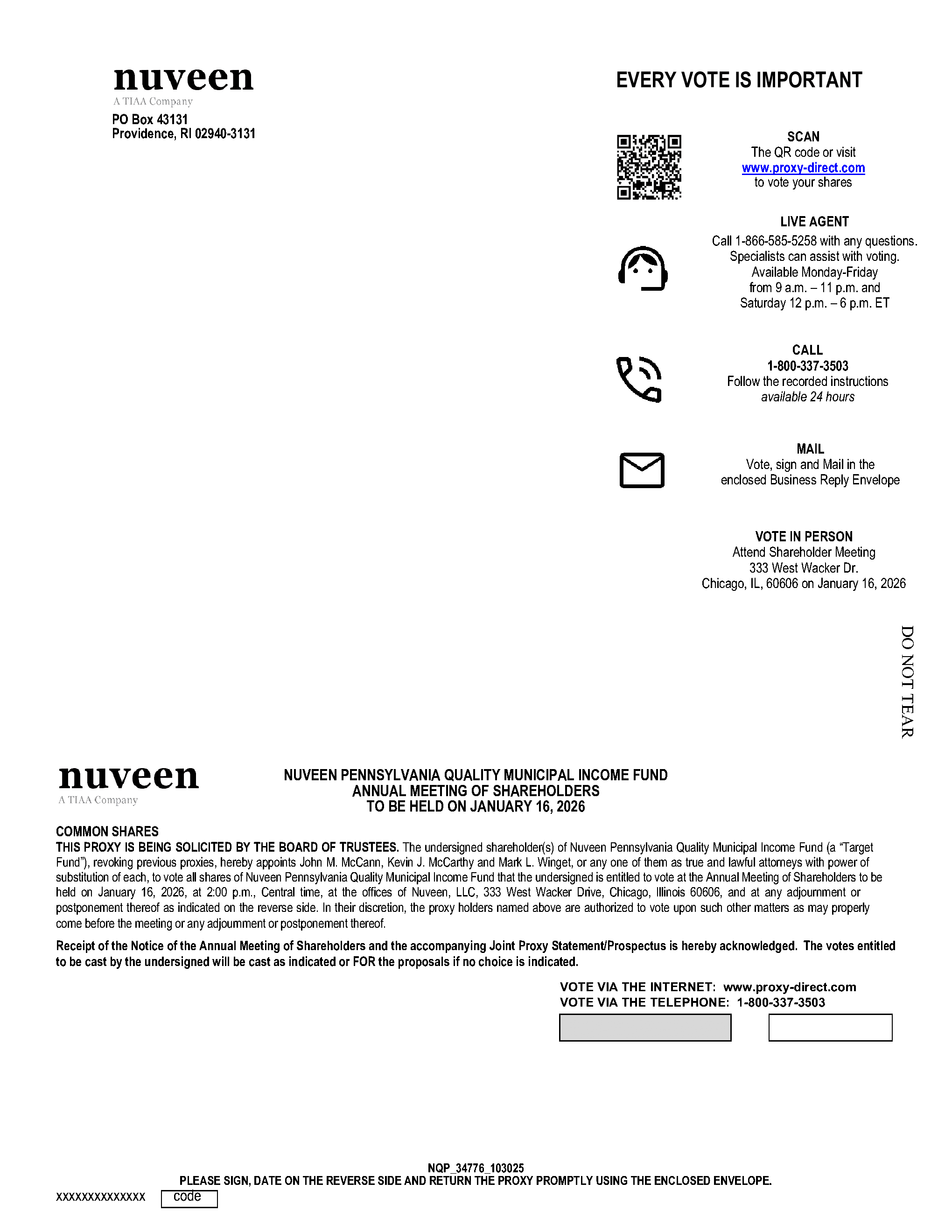 NUVEEN PENNSYLVANIA QUALITY MUNICIPAL INCOME FUND (NQP)