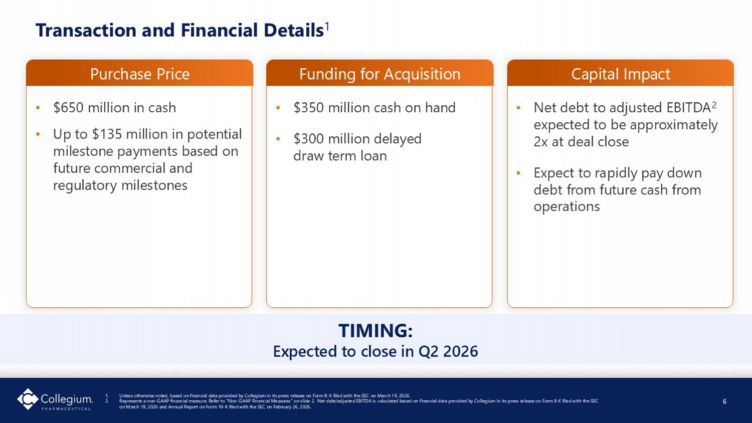 Collegium to Acquire AZSTARYS ® from Corium Therapeutics March 19, 2026 | Nasdaq: COLL Healthier people. Stronger communities.