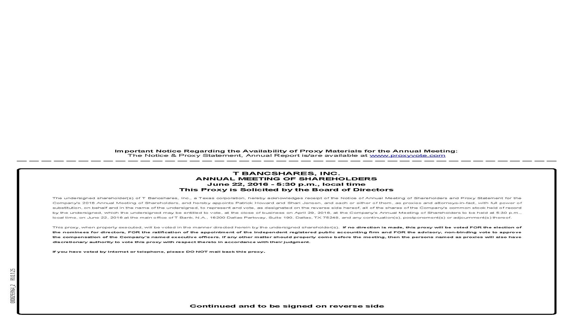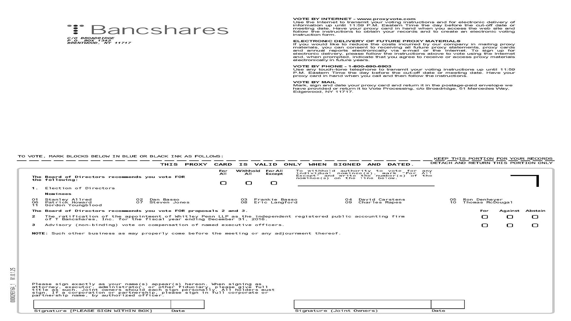 T BANCSHARES, INC.