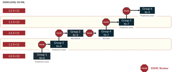 | • | Promoter: Production of the protein in the cell requires a promoter, which is a genetic element that drives expression. Certain promoters function well only in certain cell types, whereas other promoters function well in almost any cell type. We make our selection by comparing different promoters in the specific type of cells that are affected in each disease target, ideally in an animal whose physiology is close to that of humans, to find the promoter that best enables production of therapeutic levels of protein in that cell type. We have conducted internal and external research to design promoters that optimize therapeutic constructs for maximum expression with a smaller size, and increased cell specificity.  |