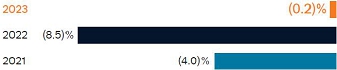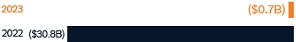 Net sales improved significantly to $(0.7) billion in 2023 from $(37) billion in 2022.