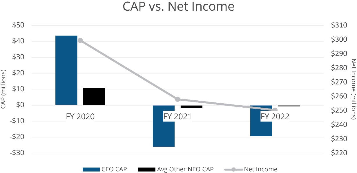 As demonstrated by the following table, the amount of compensation actually paid to Mr. McVey and the average amount of compensation actually paid to the Company’s NEOs as a group (excluding Mr. McVey) is generally aligned with the Company’s net income over the three years presented in the table.