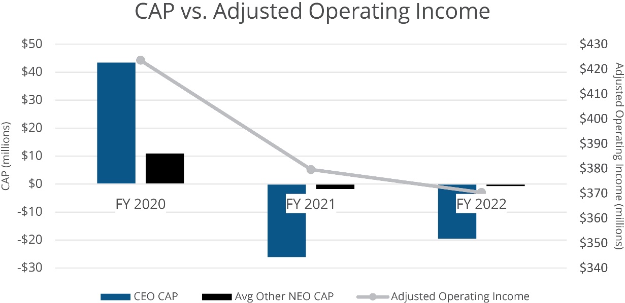 As demonstrated by the following graph, the amount of compensation actually paid to Mr. McVey and the average amount of compensation actually paid to the Company’s NEOs as a group (excluding Mr. McVey) is generally aligned with the Company’s Adjusted Operating Income over the three years presented in the table. As described above, Adjusted Operating Income is defined as operating income before: (1) unplanned inorganic activity and (2) the impact of cash incentives. While the Company uses numerous financial and non-financial performance measures for the purpose of evaluating performance for the Company’s compensation programs, the Company has determined that Adjusted Operating Income is the financial performance measure that, in the Company’s assessment, represents the most important performance measure (that is not otherwise required to be disclosed in the pay versus performance table above) used by the Company to link compensation actually paid to the company’s NEOs, for the most recently completed fiscal year, to Company performance. The Company utilizes Adjusted Operating Income as the financial component of the Company’s short-term incentive compensation program. See “– Compensation Discussion and Analysis.”