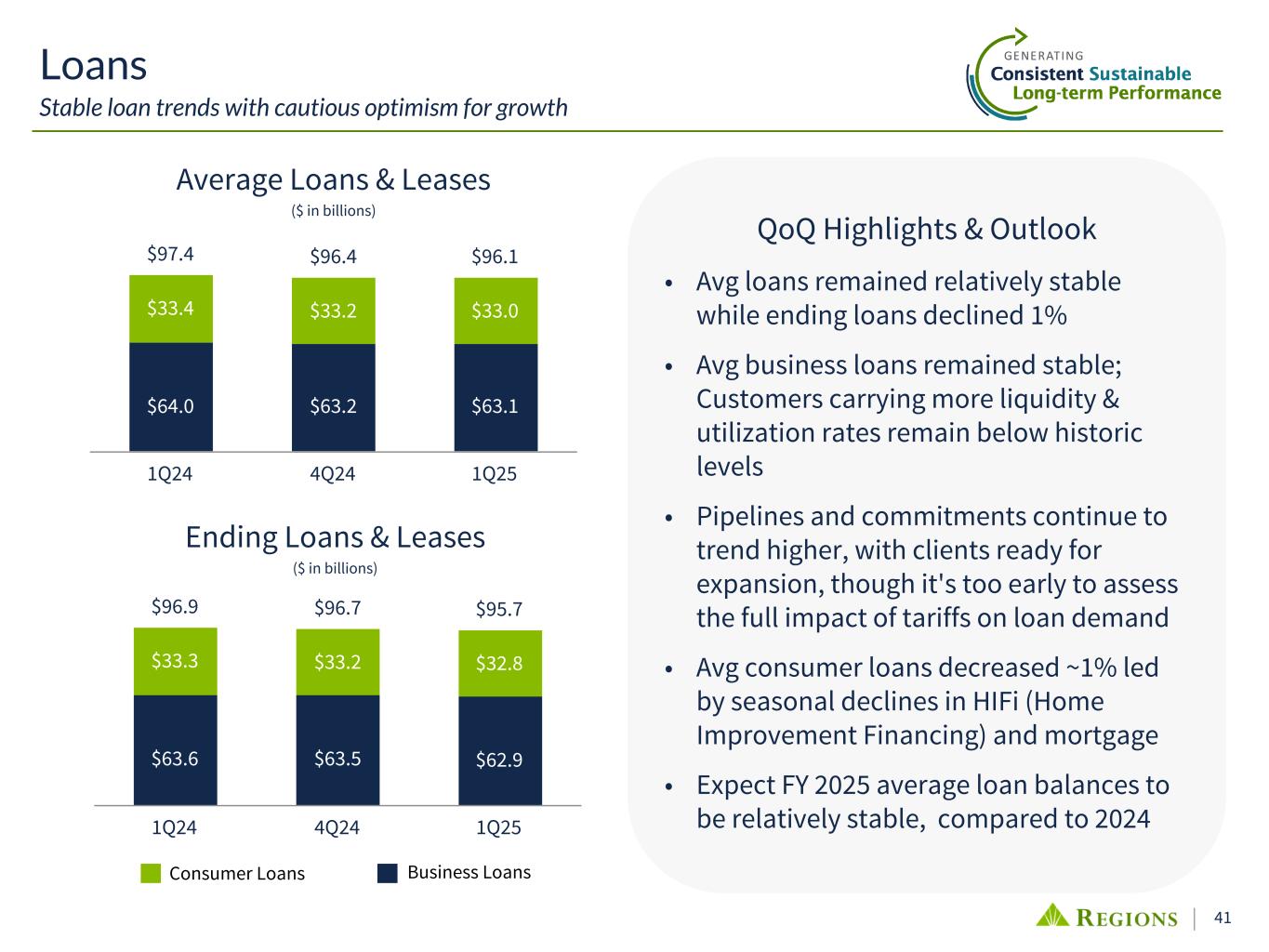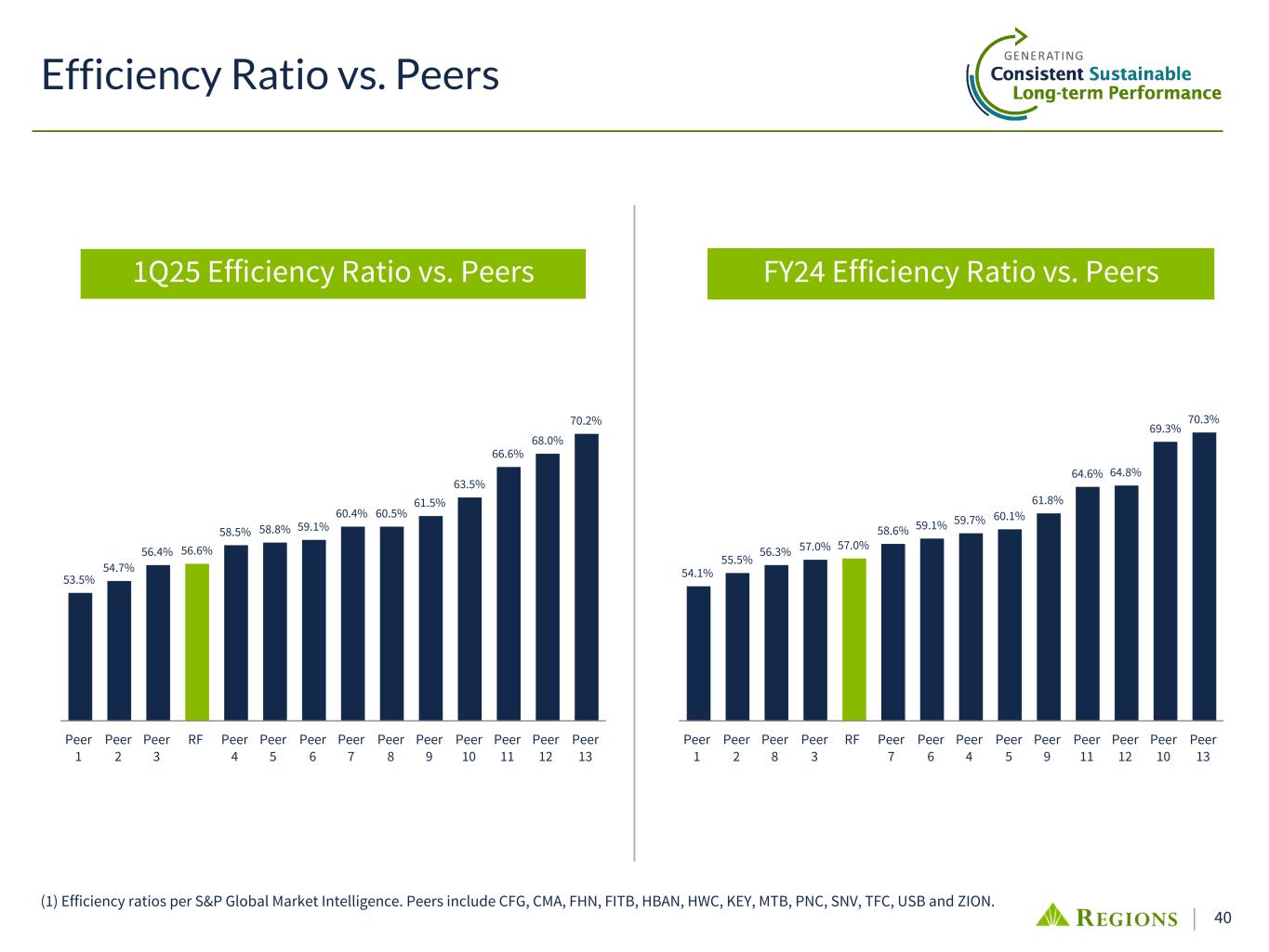 40 Efficiency Ratio vs. Peers 1Q25 Efficiency Ratio vs. Peers FY24 Efficiency Ratio vs. Peers 53.5% 54.7% 56.4% 56.6% 58.5% 58.8% 59.1% 60.4% 60.5% 61.5% 63.5% 66.6% 68.0% 70.2% Peer 1 Peer 2 Peer 3 RF Peer 4 Peer 5 Peer 6 Peer 7 Peer 8 Peer 9 Peer 10 Peer 11 Peer 12 Peer 13 54.1% 55.5% 56.3% 57.0% 57.0% 58.6% 59.1% 59.7% 60.1% 61.8% 64.6% 64.8% 69.3% 70.3% Peer 1 Peer 2 Peer 8 Peer 3 RF Peer 7 Peer 6 Peer 4 Peer 5 Peer 9 Peer 11 Peer 12 Peer 10 Peer 13 (1) Efficiency ratios per S&P Global Market Intelligence. Peers include CFG, CMA, FHN, FITB, HBAN, HWC, KEY, MTB, PNC, SNV, TFC, USB and ZION.