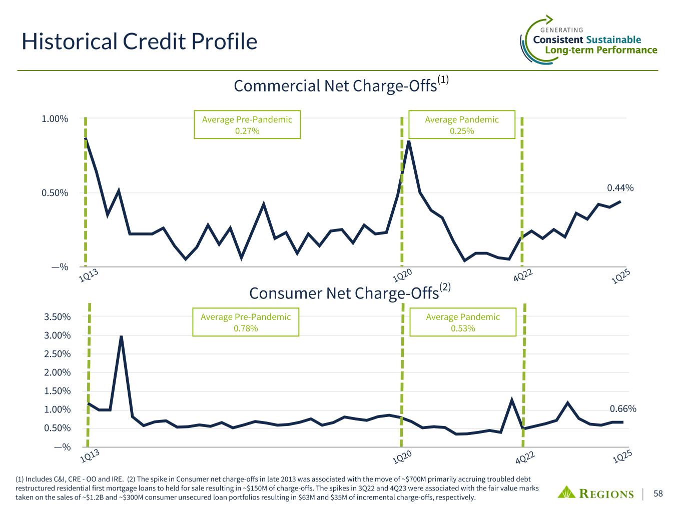 57 0.88% —% 0.50% 1.00% 1.50% 2.00% 2.50% 0.52% —% 0.50% 1.00% 1.50% 2.00% Historical Credit Profile Non-Performing Loans Total Net Charge-Offs 1Q20 1Q25 4Q221Q20 4Q22 1Q25 • Non-Accrual and loss rate levels have reverted to historical pre-pandemic ranges as expected Average Pre-Pandemic 0.46% Average Pandemic 0.35% Average Pre-Pandemic 1.07% Average Pandemic 0.64% 1Q13 1Q13