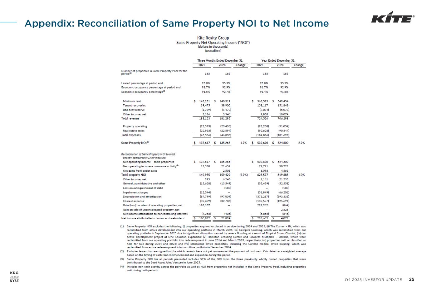 Q4 2025 INVESTOR UPDATE 25 Appendix: Reconciliation of Same Property NOI to Net Income