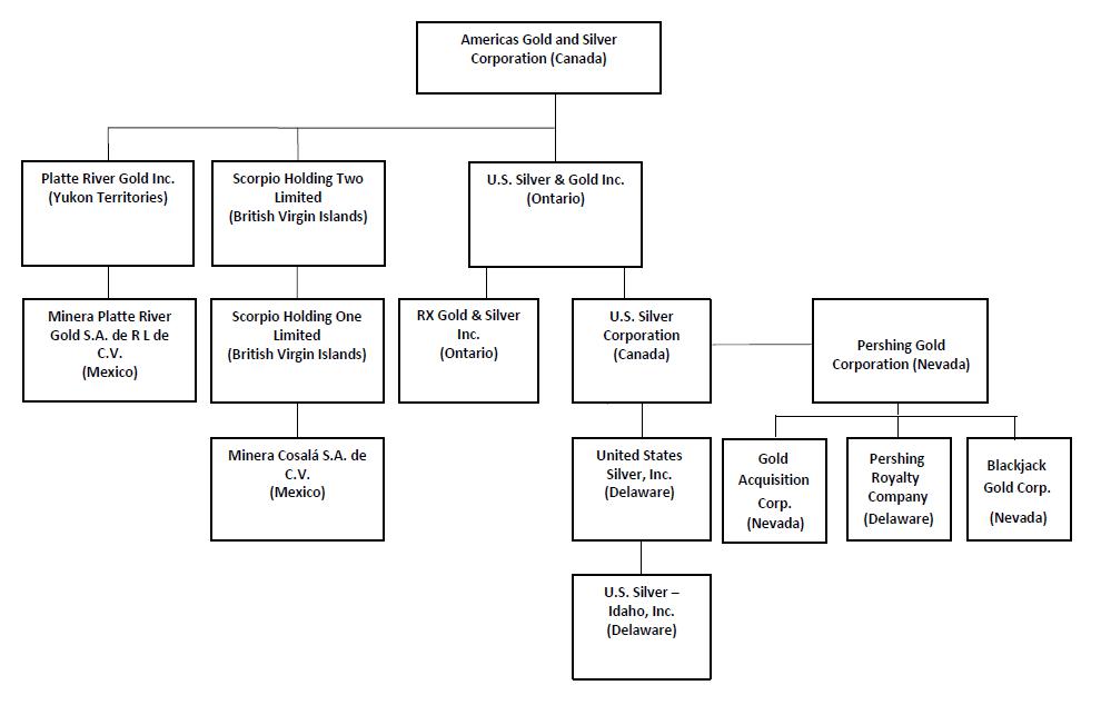 Americas Gold and Silver was incorporated as Scorpio Mining Corporation (“Scorpio Mining”) pursuant to articles of incorporation dated May 12, 1998, under the Canada Business Corporations Act with authorized share capital of an unlimited number of common shares (the “Common Shares”). On December 23, 2014, a merger of equals transaction between Scorpio Mining and U.S. Silver & Gold Inc. (“U.S. Silver”) was completed to combine their respective businesses by way of a plan of arrangement of U.S. Silver pursuant to section 182 of the Business Corporations Act (Ontario). Following the merger of equals, the combined company changed its name to Americas Silver Corporation (“Americas Silver”) by way of articles of amendment dated May 19, 2015. On April 1, 2019, Americas Silver amended its articles to create a new class of non-voting preferred shares in the capital of Americas Silver, in connection with its acquisition of Pershing Gold Corporation (“Pershing Gold”) pursuant to a plan of merger under Nevada law (the “Pershing Gold Transaction”), which was completed on April 3, 2019. Following the completion of the Pershing Gold Transaction, the Company changed its name to “Americas Gold and Silver Corporation” pursuant to articles of amendment dated effective September 3, 2019. The Company’s principal and registered office is located at 145 King Street West, Suite 2870, Toronto, Ontario, Canada M5H 1J8.