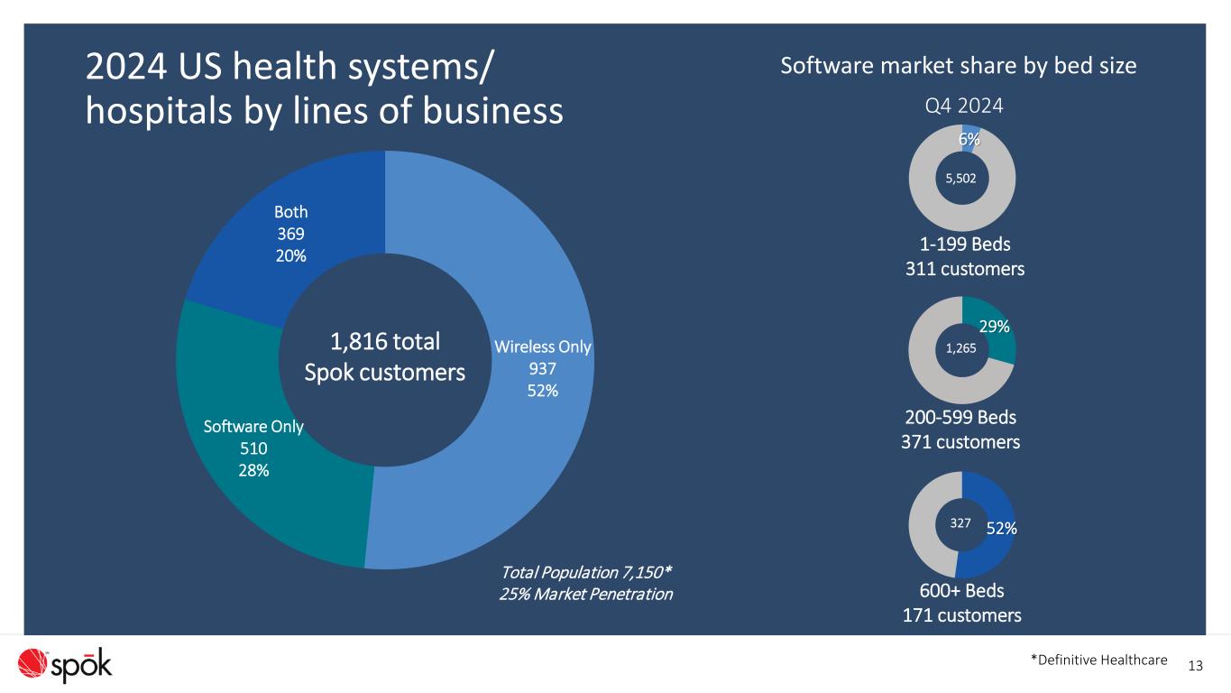 Customer Software Wireless Tenure 12 Longstanding Customer Relationships… 22 31 -- -- -- 45 30 28 31 33 7 Arizona Customer Software Wireless Tenure 11 28 23 21 21 17 -- -- -- 19 Top 20 adult hospitals (2024-2025) Customer Software Wireless Tenure 15 38 22 -- 26 36 28 -- -- -- Top 10 children’s hospitals (2024-2025) * Spok has an average relationship tenure of 26 years with the U.S. News & World Report’s “Best Hospitals” 28 15 Rochester 38 22 39
