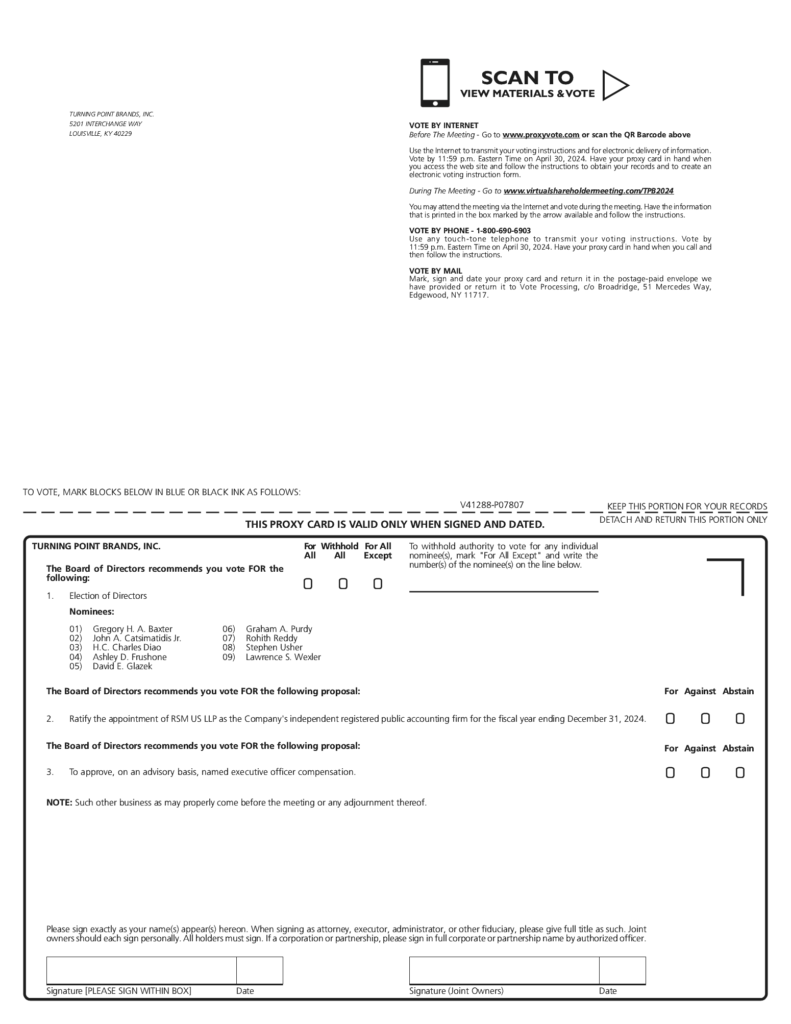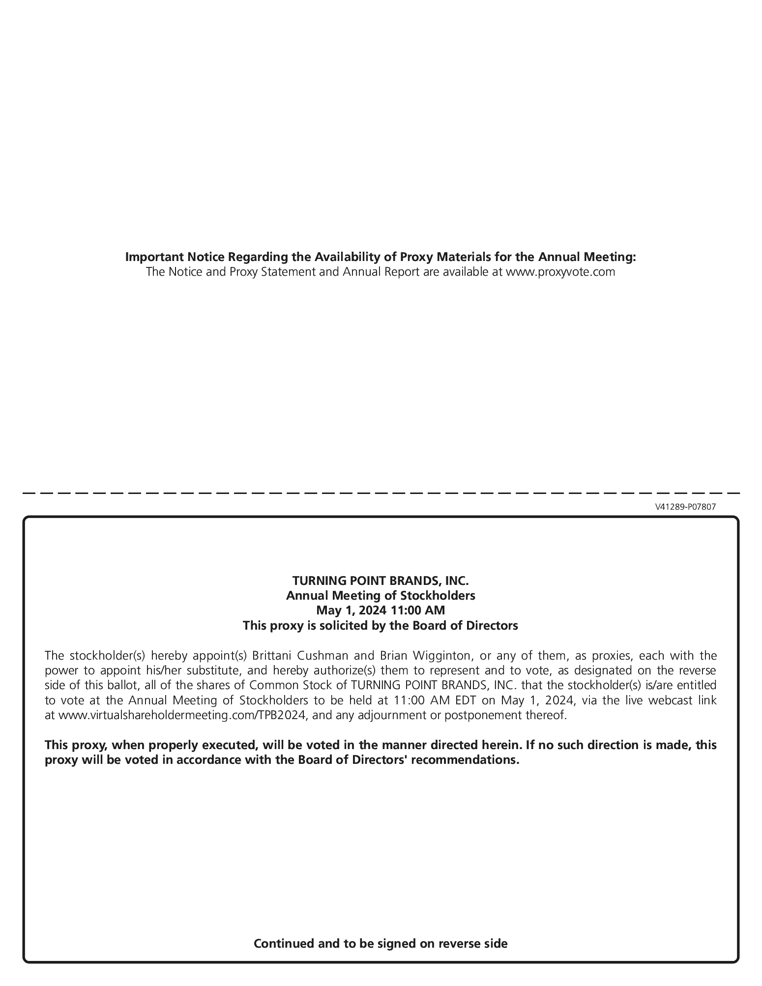 Even if you plan to attend the Annual Meeting, we encourage you to submit a proxy and vote prior to the Annual Meeting. If you do give a proxy, we must receive it by 11:59 p.m., eastern daylight time, on April 30, 2024, or your vote will not be recorded. If you prefer, you may instead vote virtually at the meeting by visiting www.virtualshareholdermeeting.com/TPB2024, and entering the 16-digit control number, located on your proxy card.
