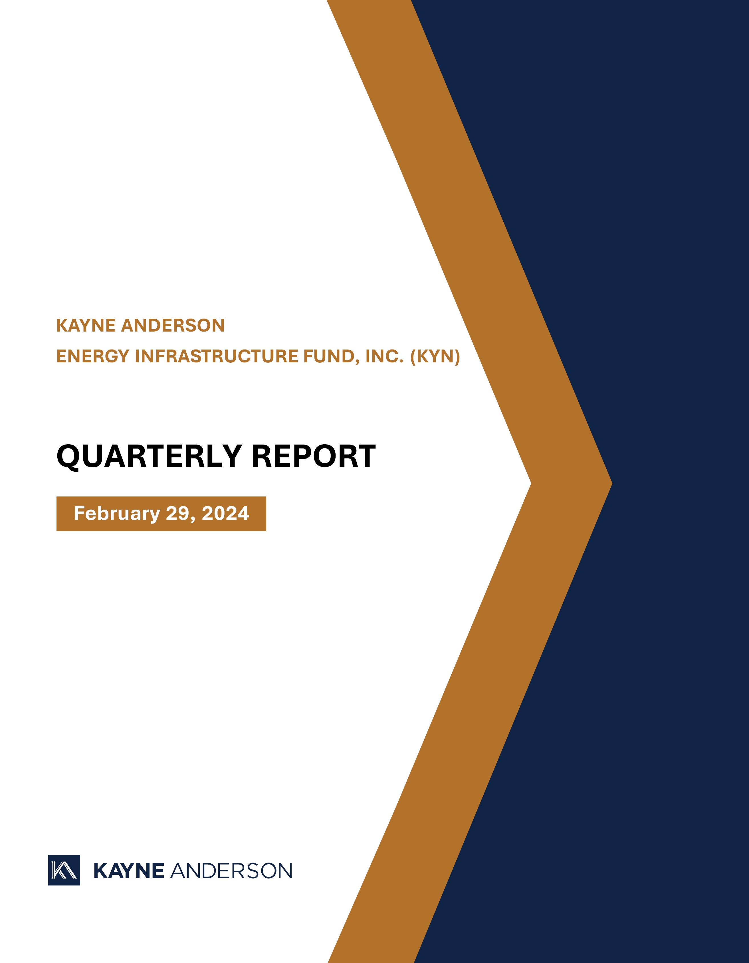 CAUTIONARY NOTE REGARDING FORWARD-LOOKING STATEMENTS: This report of Kayne Anderson Energy Infrastructure Fund, Inc. (the “Company”) contains “forward-looking statements” as defined under the U.S. federal securities laws. Generally, the words “believe,” “expect,” “intend,” “estimate,” “anticipate,” “project,” “will” and similar expressions identify forward-looking statements, which generally are not historical in nature. Forward-looking statements are subject to certain risks and uncertainties that could cause actual results to materially differ from the Company’s historical experience and its present expectations or projections indicated in any forward-looking statements. These risks include, but are not limited to, changes in economic and political conditions; regulatory and legal changes; energy infrastructure company industry risk; leverage risk; valuation risk; interest rate risk; tax risk; and other risks discussed in the Company’s filings with the Securities and Exchange Commission (“SEC”). You should not place undue reliance on forward-looking statements, which speak only as of the date they are made. The Company undertakes no obligation to update or revise any forward-looking statements made herein. There is no assurance that the Company’s investment objectives will be attained.
