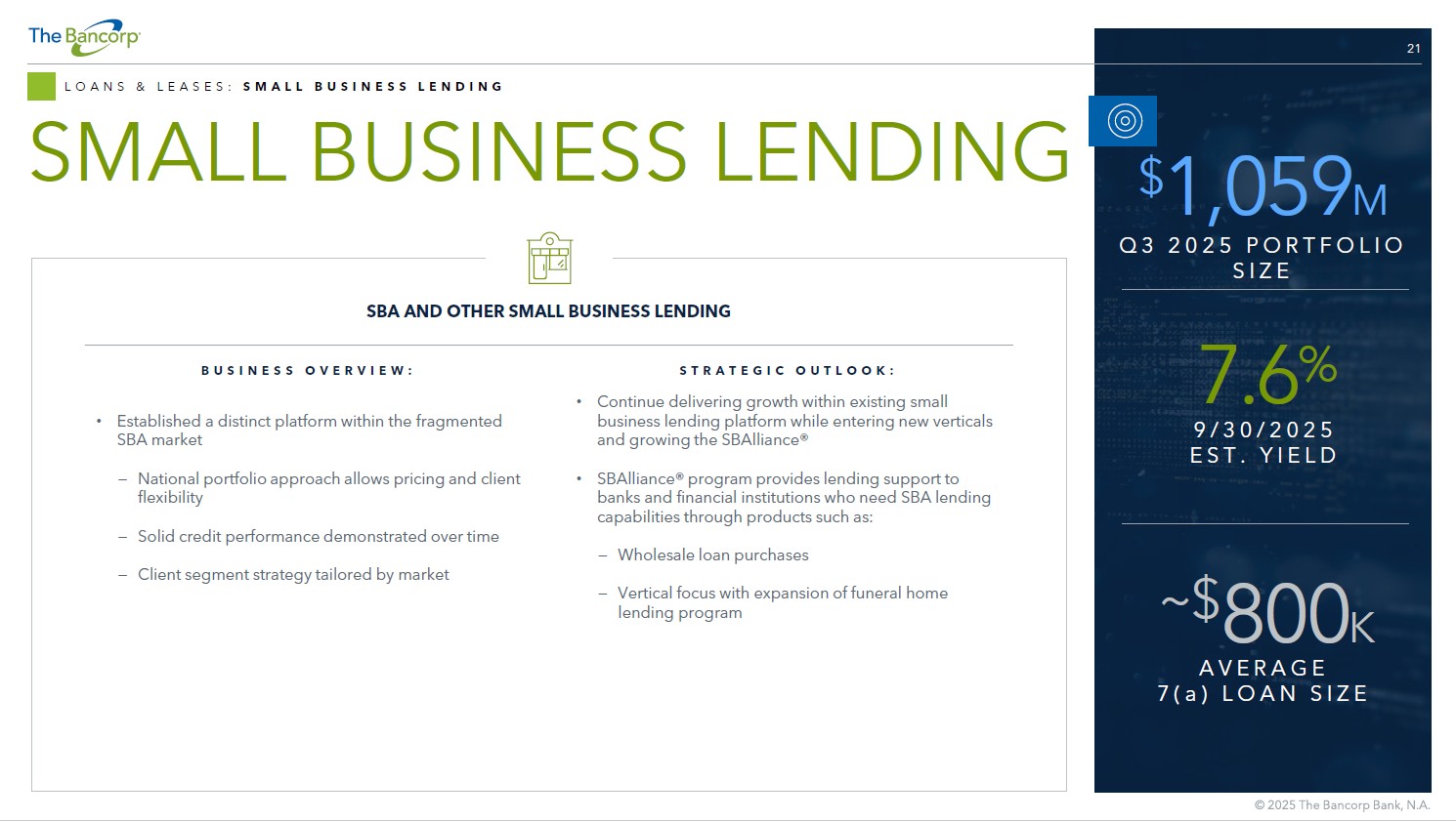 THE BANCORP INVESTOR PRESENTATION OCTOBER 2025