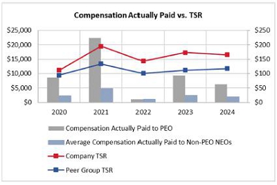 | NAMED EXECUTIVE OFFICER COMPENSATION Compensation Discussion & Analysis This Compensation Discussion & Analysis describes our executive compensation programs, including the oversight of such programs by our Compensation Committee and the rationale and processes used to determine the compensation for the Company’s NEOs and provides a detailed description of those programs. This Compensation Discussion & Analysis, which may include forward-looking statements, should be read together with the compensation tables and related disclosures that follow this section. Overview The Compensation Committee sets corporate goals and objectives with respect to executive compensation, evaluates performance against those goals and objectives, and determines the appropriate level and structure of executive compensation based on its evaluation. In carrying out these duties during 2024, the Compensation Committee considered analyses prepared by its independent compensation consultant. Philosophy and Objectives We desire to build and maintain a superior executive management team to forge our business strategy and lead us to profitable growth. We believe that success in accomplishing these goals will, in part, depend on the effectiveness of our executive compensation programs, which are designed to compensate and reward NEOs for the achievement of corporate goals and desired business results as well as for their individual contributions in the execution of our business strategy. We strive for excellence in corporate and individual performance by tying a significant portion of overall executive compensation to the achievement of our corporate goals. The Compensation Committee believes that the most effective executive compensation programs are designed to reward the achievement of specific annual, long-term, and strategic goals that align executives’ interests with those of the shareholders by rewarding performance above established goals, with the ultimate objective of improving shareholder value. Executive Compensation Goals Attract and retain the best possible executive talent Align compensation with long-term value creation Encourage superior performance for all individual NEOs 33 |