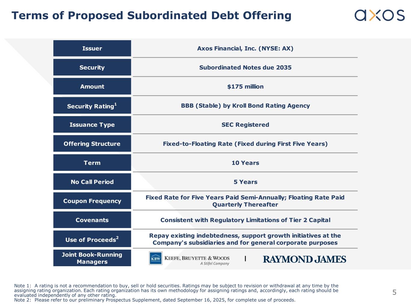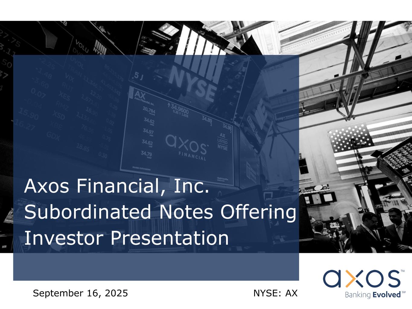 Axos Financial, Inc. Subordinated Notes Offering Investor Presentation September 16, 2025 NYSE: AX