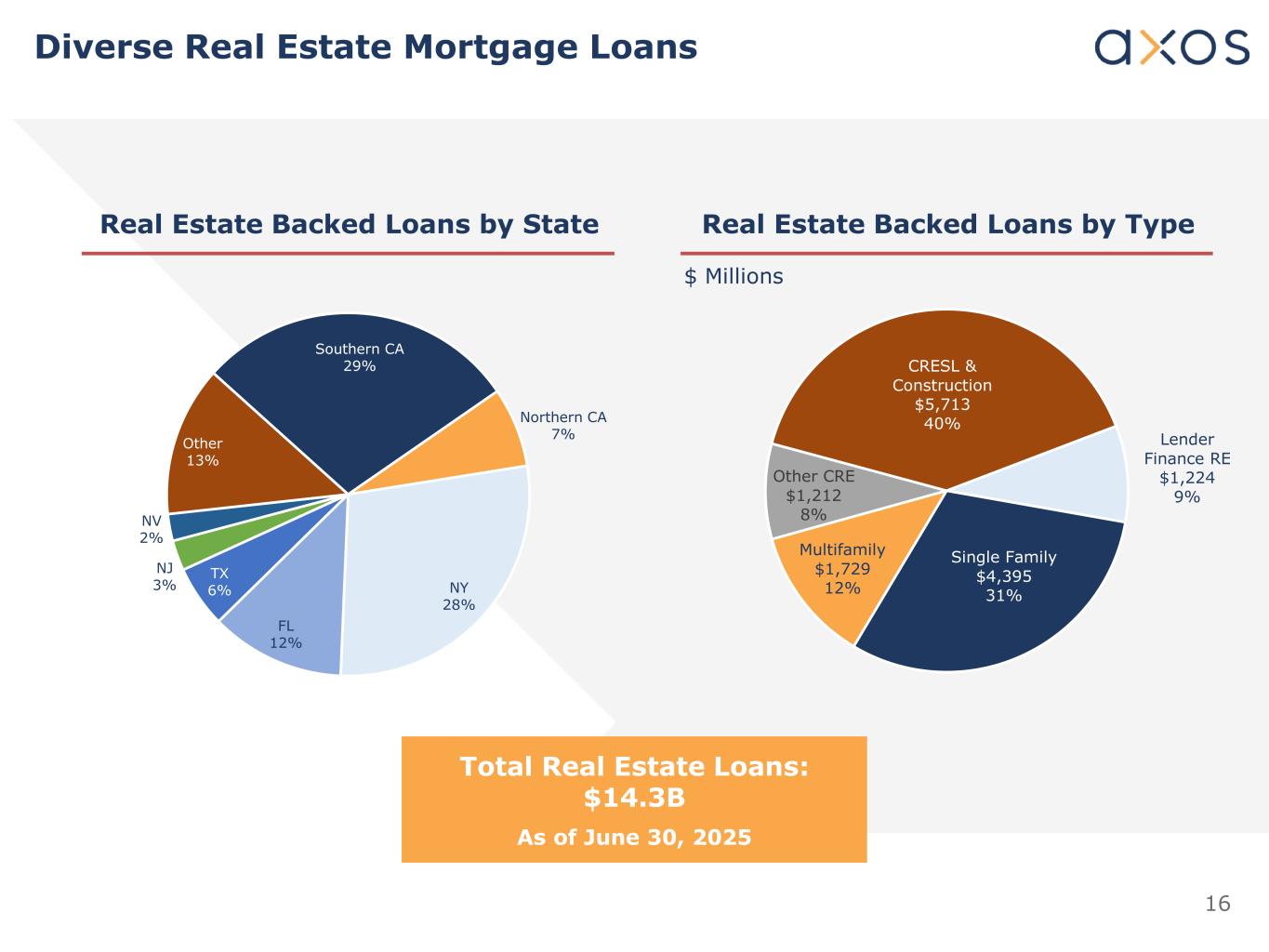 13 Credit Investor Highlights Note1: CAGR calculated using EPS and book value for the fiscal year ended June 30, 2020 and for the fiscal year ended June 30, 2025. Experienced and “cycle-tested” management team Track record of credit discipline, risk management and profitability Differentiated digital platform Fully digital, no branch model provides structural cost advantages over traditional banks Built to capitalize on digital financial services adoption Strong credit performance Underlying credit culture of low-LTV, real estate secured lending (99% of loans backed by hard assets) Senior position in all lender finance and commercial specialty RE loans with capital support from sponsors and junior partners Deposit diversification and growth Continued core deposit transformation and liquidity management 32% checking and other demand deposits, as of June 30, 2025 Optionality with ~$1.5 billion of deposits from Axos Securities that can provide significant fee income Healthy capital position and capital generation through earnings Tier 1 capital ratio of 12.52%, tier 1 leverage ratio of 10.73% and total capital ratio of 15.28% Superior profitability (20.0% CAGR in EPS) that fueled a 18.2% CAGR in book value in the last five years1 ROAA of 1.82% and ROAE of 17.30% for the fiscal year ended June 30, 2025 Corporate ratings profile BBB+ Kroll