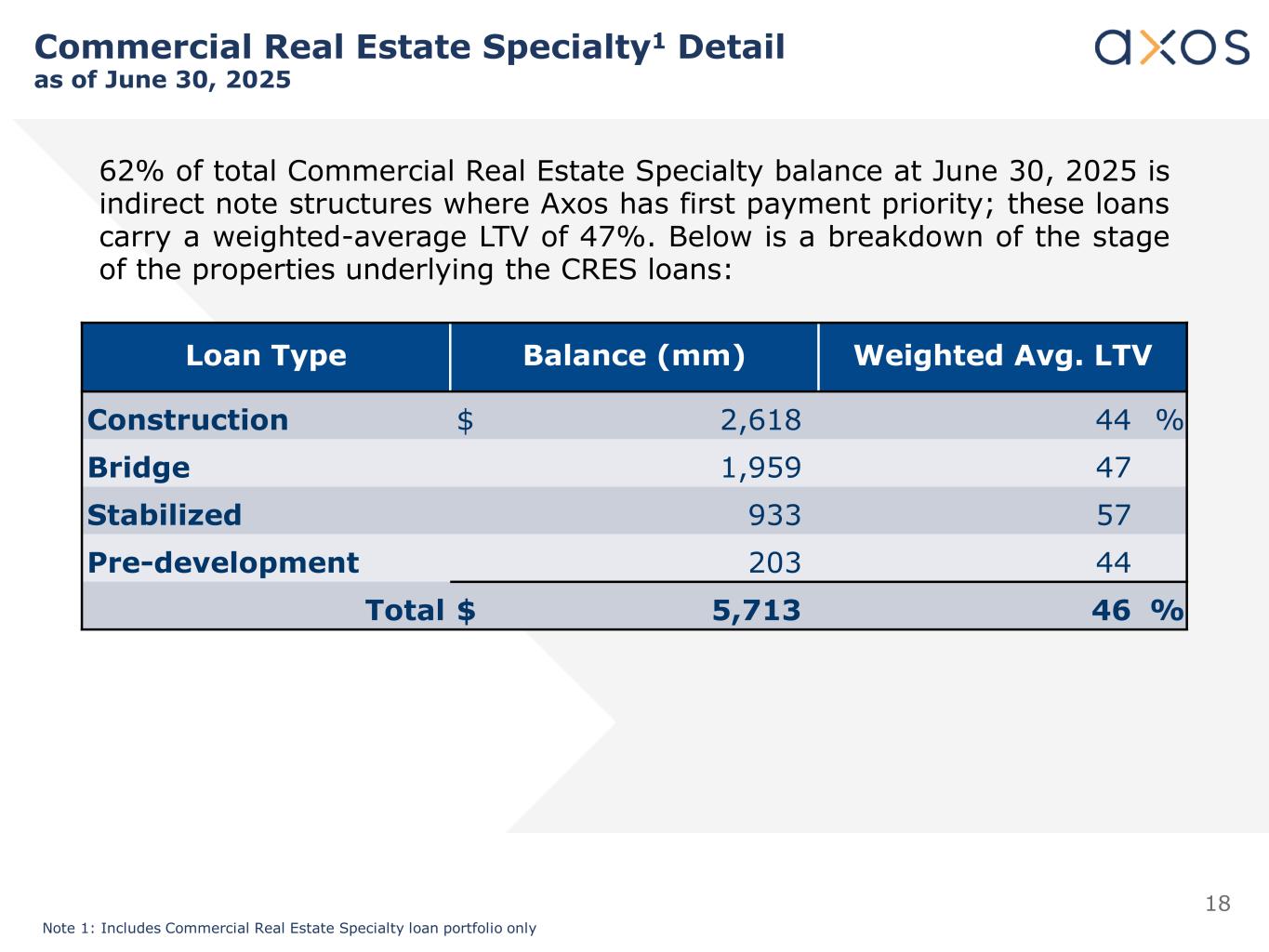 17 CRE Specialty Breakout CRE Specialty $ Millions Total CRE Specialty: $5.7B As of June 30, 2025 Multifamily $1,561 27% SFR $1,229 22% Office $389 7% Hotel $880 15% Retail $162 3% Industrial $1,183 21% Other $309 5%