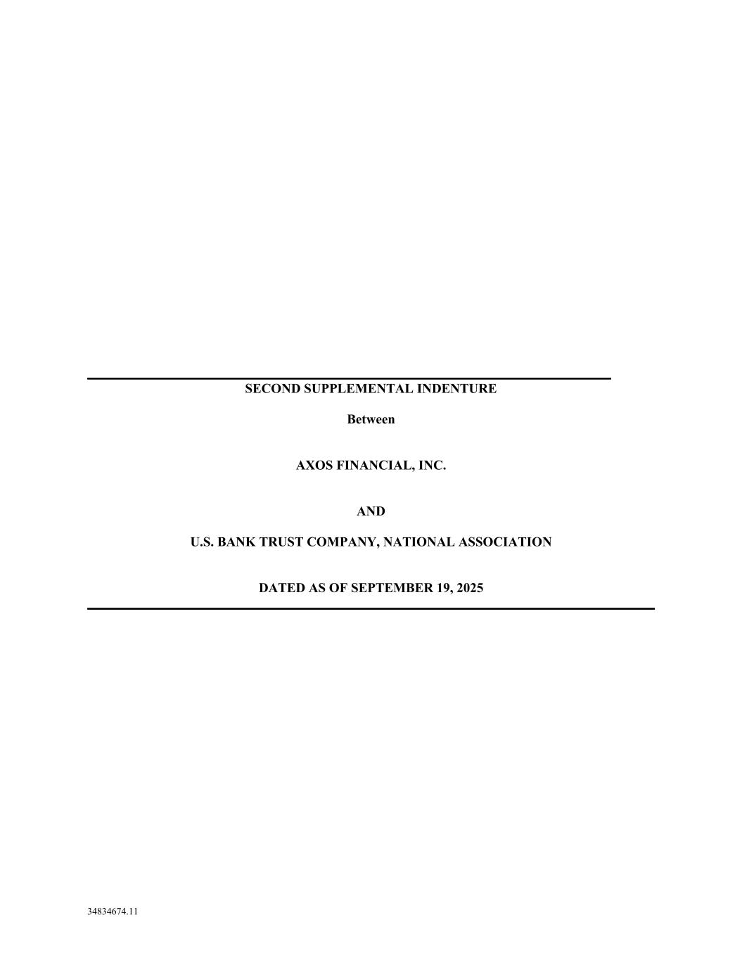 34834674.11 SECOND SUPPLEMENTAL INDENTURE Between AXOS FINANCIAL, INC. AND U.S. BANK TRUST COMPANY, NATIONAL ASSOCIATION DATED AS OF SEPTEMBER 19, 2025