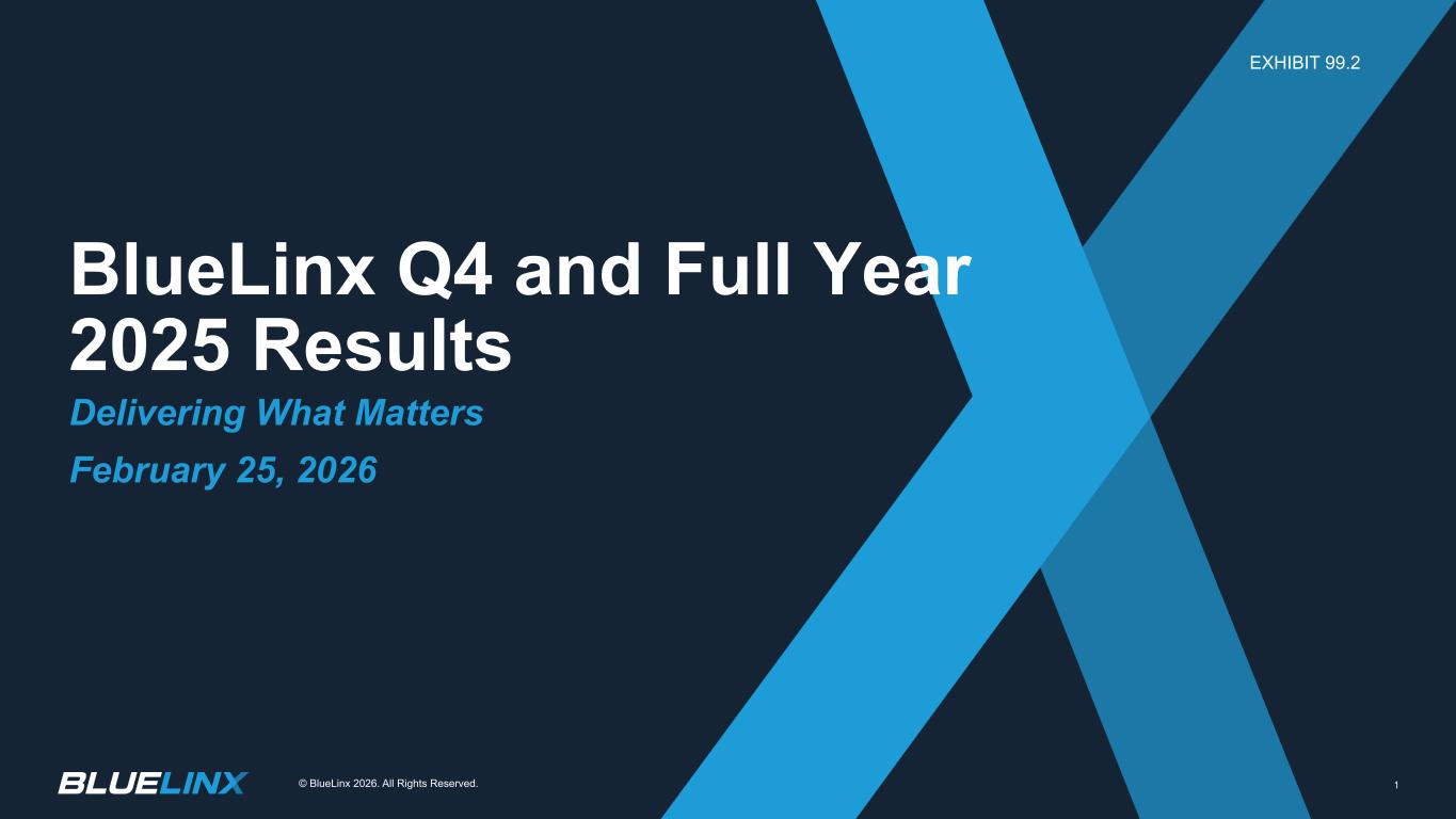 BlueLinx Q4 and Full Year 2025 Results Delivering What Matters February 25, 2026 © BlueLinx 2026. All Rights Reserved. 1 .2