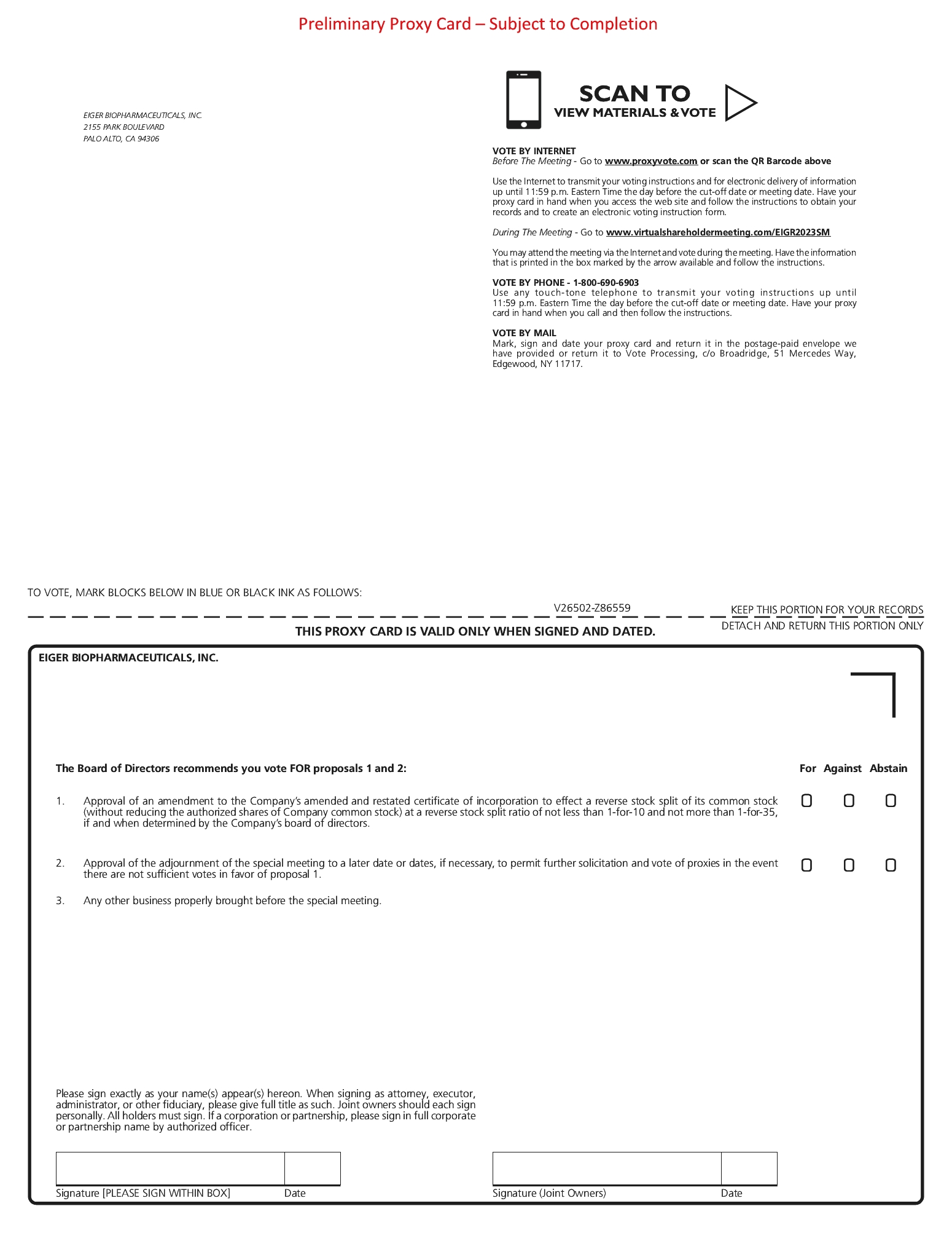We also believe that a higher stock price could help us attract and retain employees and other service providers. We believe that some potential employees and service providers are less likely to work for a company with a low stock price, regardless of the size of the company’s market capitalization. If the reverse stock split successfully increases the per-share price of our common stock, we believe this increase would enhance our ability to attract and retain employees and service providers. Further, the reverse stock split will result in additional authorized and unissued shares becoming available for general corporate purposes as the Board may determine from time to time, including for use under its equity compensation plans.