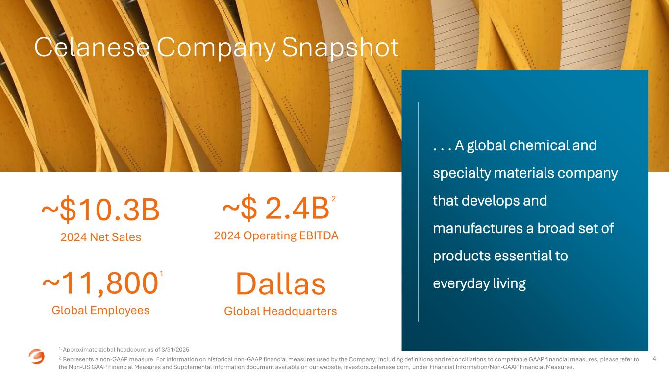 Discussion Topics 3 Company Overview 2025 Actions Celanese Value Drivers