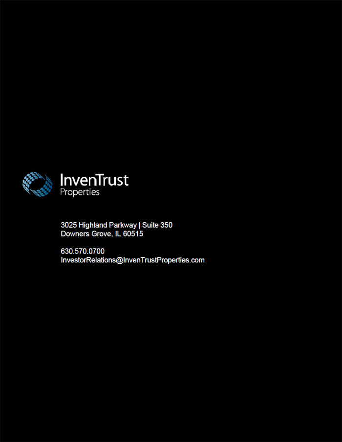 Only one Notice or copy of this proxy statement and the 2022 Annual Report on Form 10-K have been sent to certain stockholders who share a single address, unless any stockholder residing at that address has given contrary instructions. This procedure, referred to as householding, reduces the volume of duplicate information stockholders receive and reduces mailing and printing costs. Additional copies of this proxy statement or our Annual Report on Form 10-K for the year ended December 31, 2022, will be furnished to you, without charge, by writing us at: c/o InvenTrust Properties Corp., 3025 Highland Parkway, Suite 350, Downers Grove, Illinois 60515, Attention: Investor Relations, or by emailing us at investorrelations@inventrustproperties.com. If you share an address with another stockholder and the two of you would like to receive only a single set of our annual disclosure documents, please contact us by writing us at: c/o InvenTrust Properties Corp., 3025 Highland Parkway, Suite 350, Downers Grove, Illinois 60515, Attention: Investor Relations, or by emailing us at investorrelations@inventrustproperties.com, or, if a bank, broker or other nominee holds your shares, please contact your bank, broker or other nominee directly.