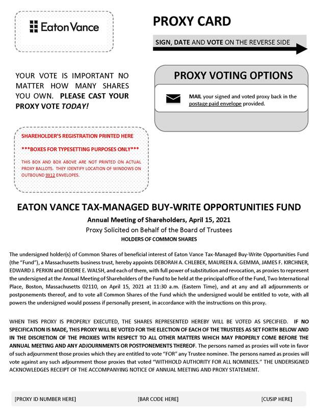 Important Notice Regarding the Availability of Proxy Materials for the Annual Meeting of Shareholders to be Held on Thursday, April 15, 2021: The Notice of Annual Meeting of Shareholders, Proxy Statement, Proxy Card and Shareholder Report are available on the Eaton Vance website at https://funds.eatonvance.com/closed-end-fund-and-term-trust-documents.php.