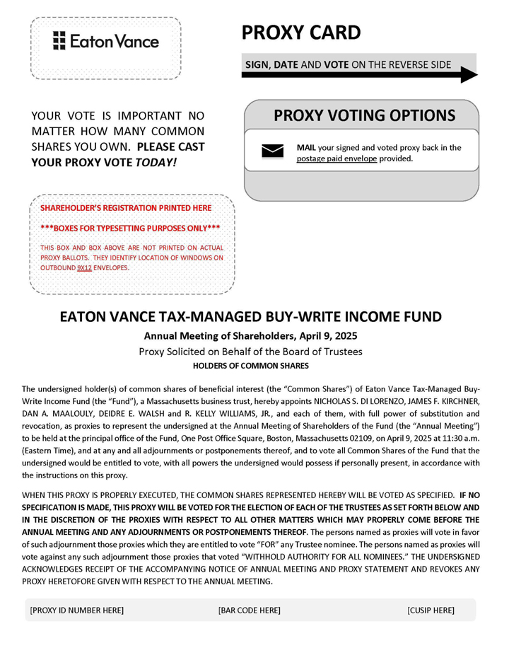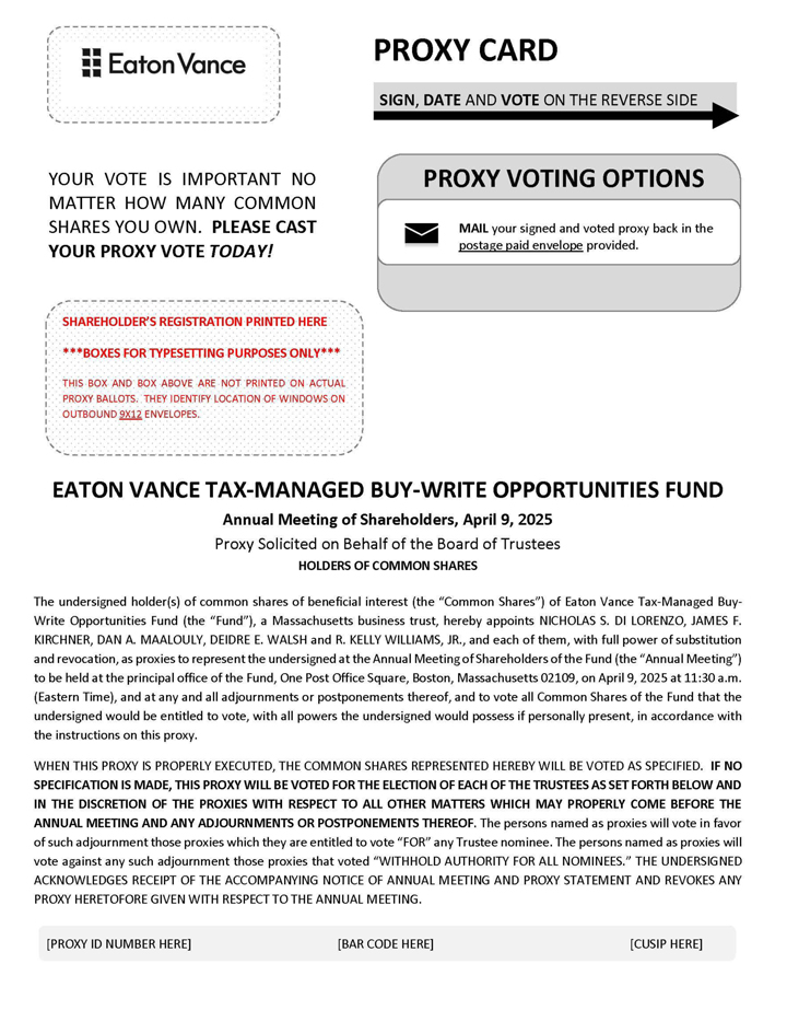 Important Notice Regarding the Availability of Proxy Materials for the Annual Meeting of Shareholders to be Held on Wednesday, April 9, 2025: The Notice of Annual Meeting of Shareholders, Proxy Statement, Proxy Card(s) and Shareholder Report are available on the Eaton Vance website at https://funds.eatonvance.com/closed-end-fund-and-term-trust-documents.php.