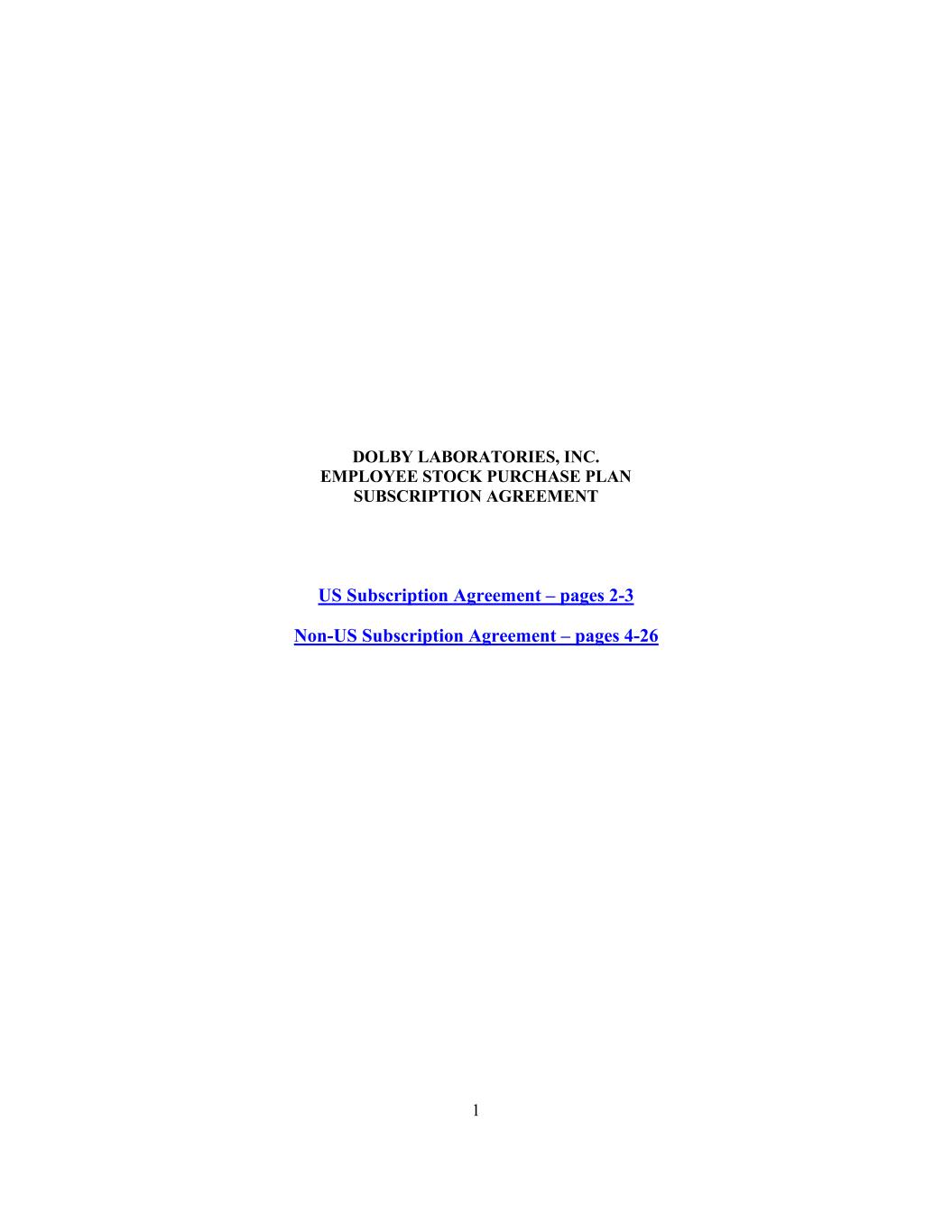 1 DOLBY LABORATORIES, INC. EMPLOYEE STOCK PURCHASE PLAN SUBSCRIPTION AGREEMENT US Subscription Agreement – pages 2-3 Non-US Subscription Agreement – pages 4-26