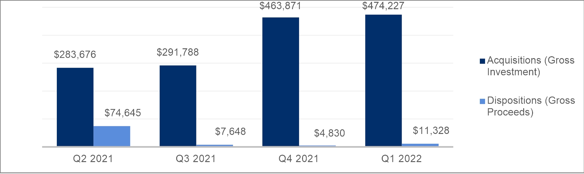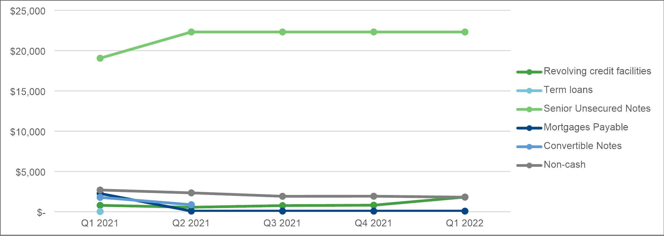 Adjusted Debt / Annualized Adjusted EBITDAre would be 5.0x if the 3.1 million shares under open forward sales agreements had been settled as of March 31, 2022. Adjusted Debt / Annualized Adjusted EBITDAre would be 5.1x if the 5.5 million shares under open forward sales agreements had been settled as of March 31, 2021. |
