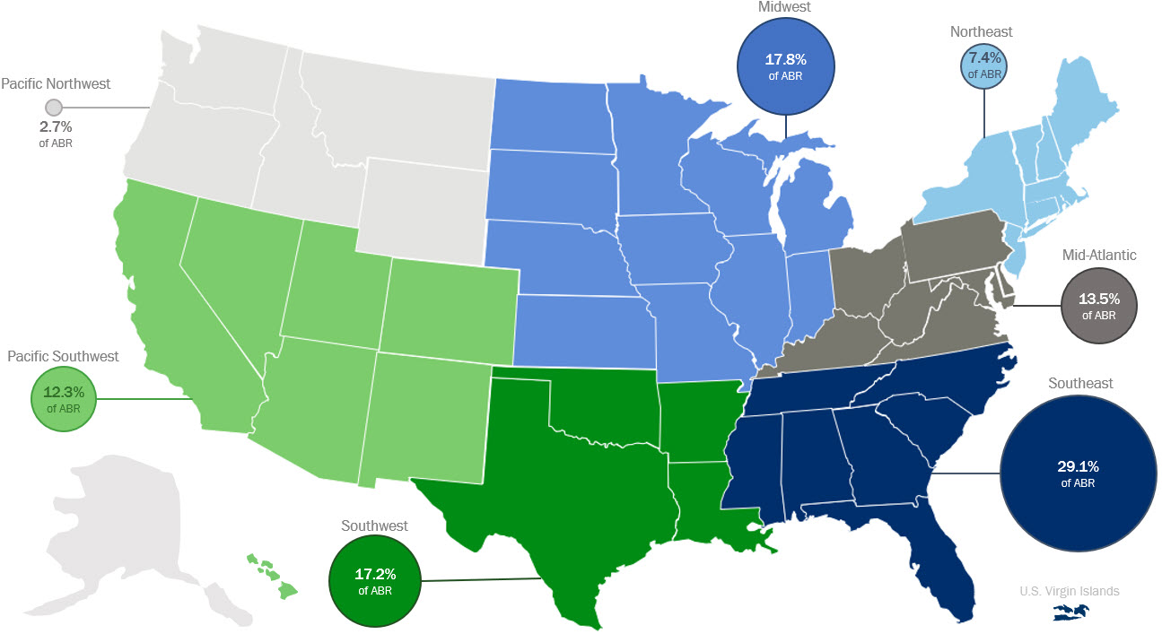 Represents Base Rent plus earned income from direct financing leases and deferred revenue from development deals for the final month of the reporting period. It is adjusted to reflect acquisitions and dispositions for that month as if such acquisitions and dispositions had occurred as of the beginning of the month. The total is then multiplied by 12. ABR is used when calculating certain metrics to evaluate portfolio credit and diversification and to manage risk. |