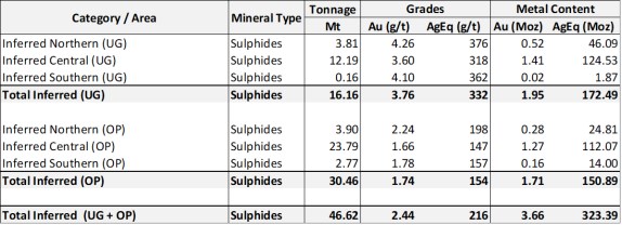Table 3: Inferred Mineral Resource Estimates for Jerritt Canyon with an Effective Date of December 31, 2025