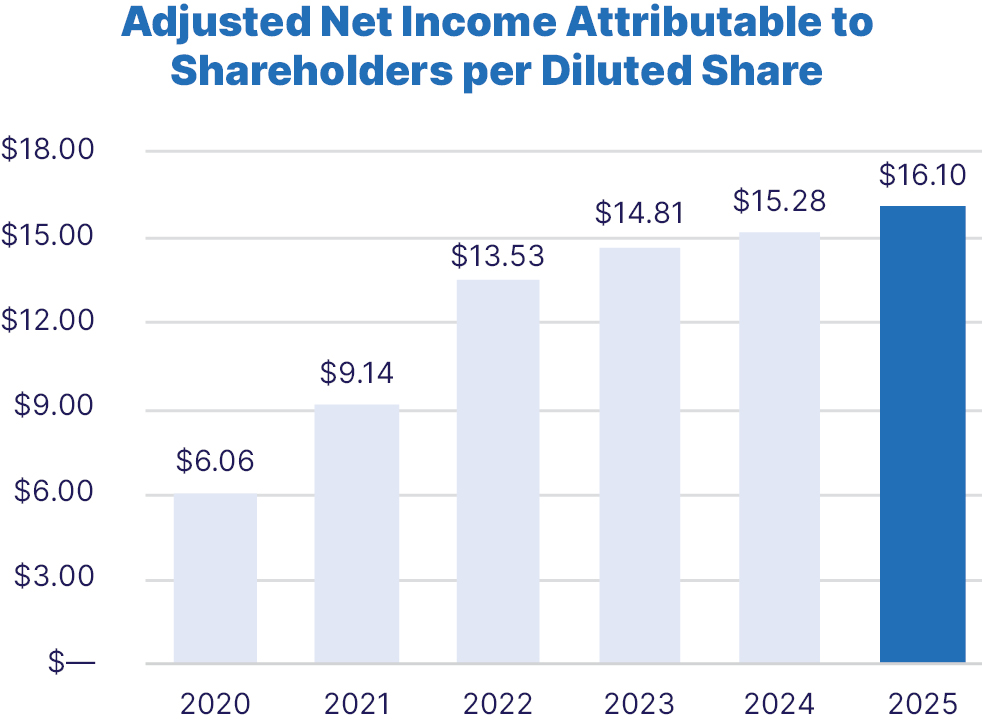 The following table reflects the reconciliation of GAAP net income per diluted share to adjusted net income per diluted share, a non-GAAP financial performance metric presented in the “2025 Company Performance Snapshot” section included herein for the quarters ended December 31, 2025 and 2024.