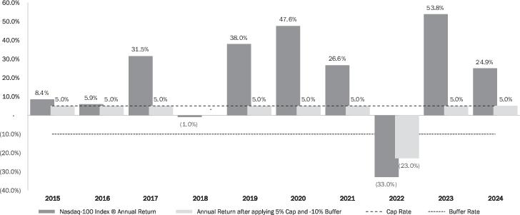 your participation in Index gains is limited by our use of an Upside Parameter. This means that your returns may be lower than the Index’s returns. In return for