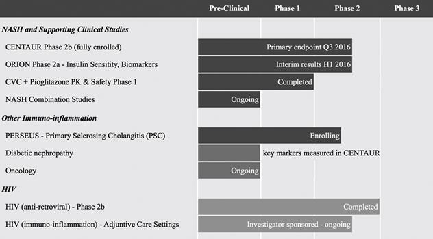 We are a clinical-stage biopharmaceutical company focused on the development and commercialization of novel therapies to treat liver disease, inflammation, fibrosis and HIV. Our lead product candidate, cenicriviroc, or CVC, is a first-in-class immunomodulator and dual inhibitor of CCR2 and CCR5 being evaluated for the treatment of non-alcoholic steatohepatitis, or NASH, primary sclerosing cholangitis, or PSC, and as an adjunctive therapy to standard of care in HIV. We operate in one reportable segment in the United States of America.