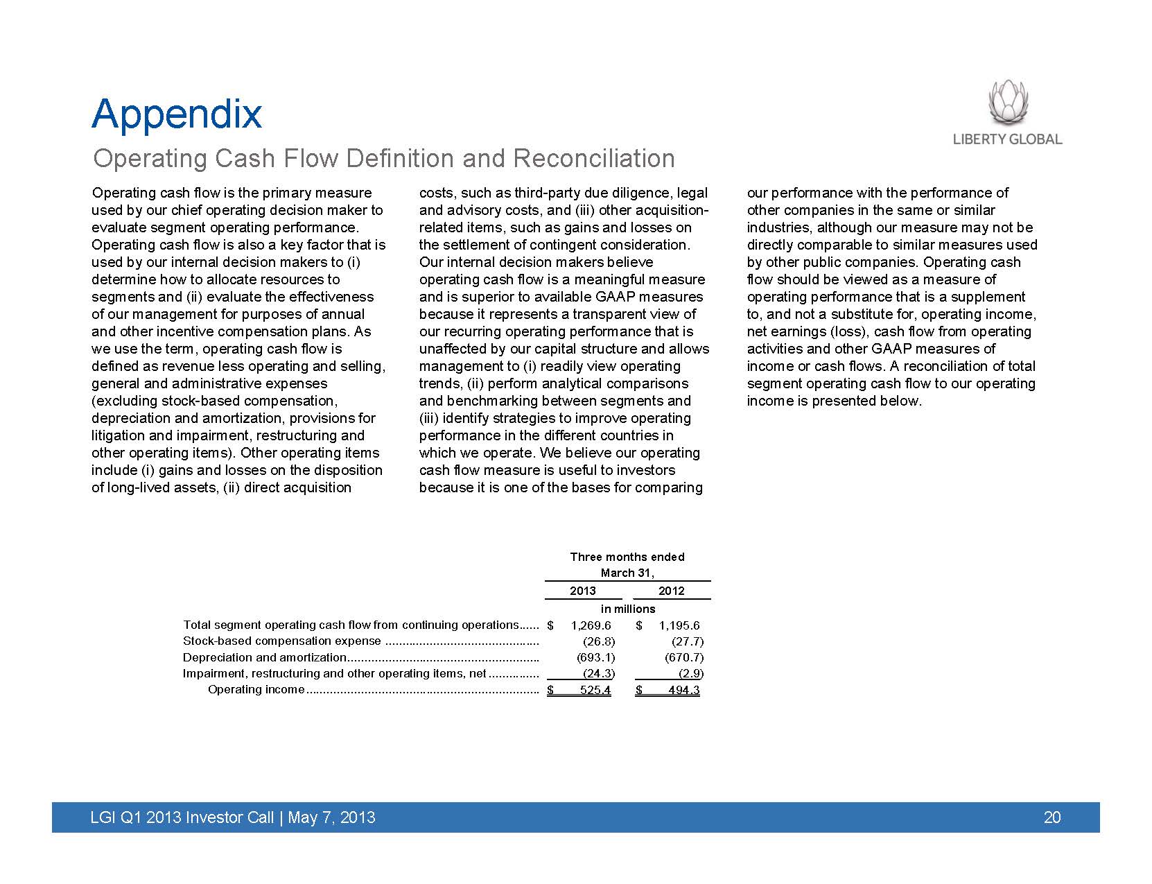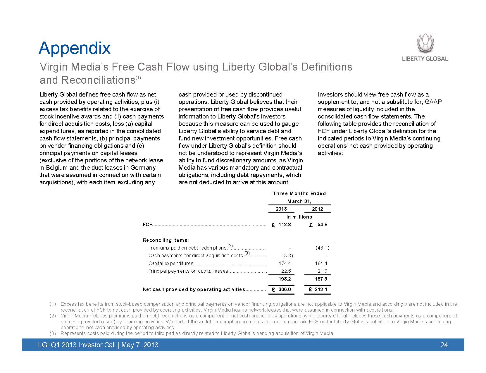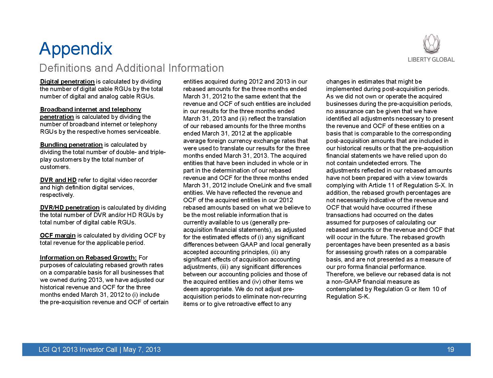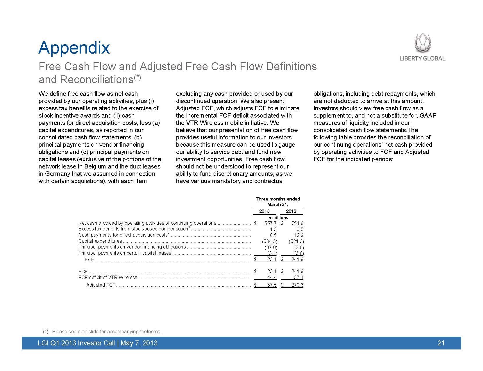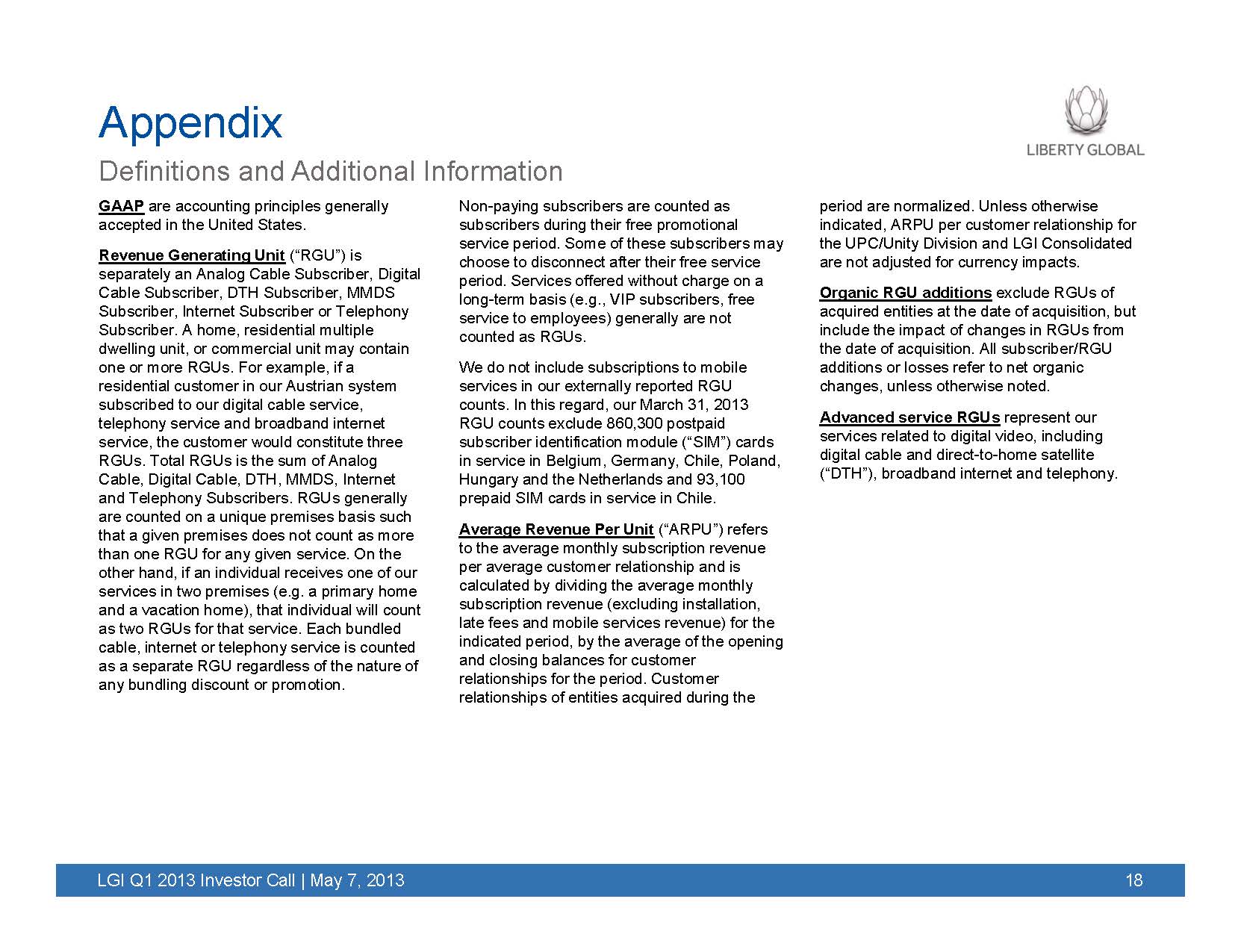 The following slides were included in Liberty Global's Q1 2013 earnings presentation, which was posted on Liberty Global’s internet website on May 7, 2013.