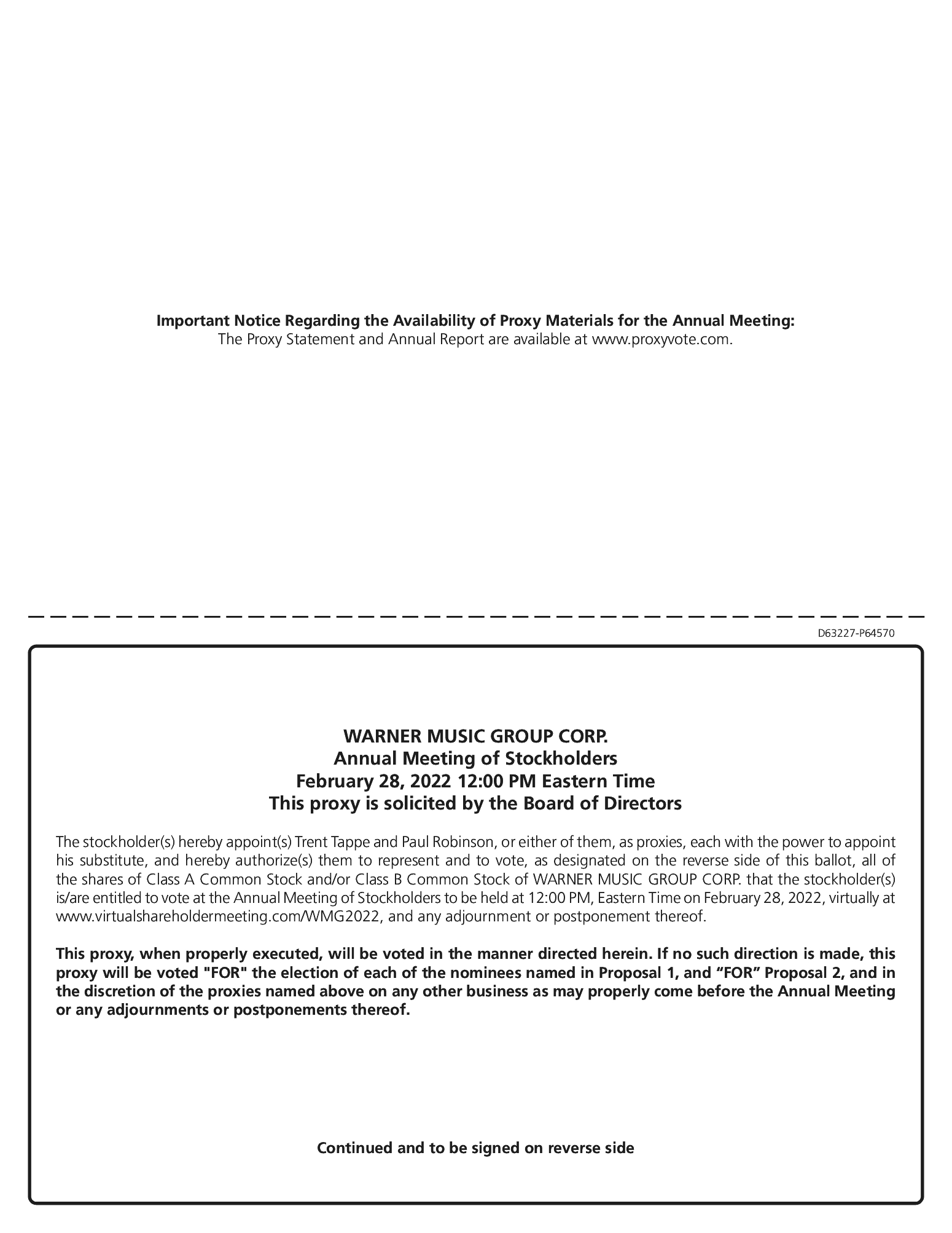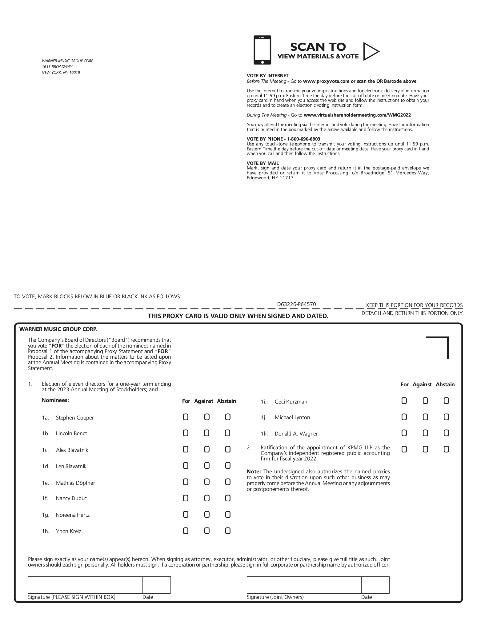 On August 13, 2015, a subsidiary of the Company, Warner Music Inc., entered into a license agreement with Access for the use of office space in the Company’s corporate headquarters at 1633 Broadway, New York, New York. The license fee of $2,775 per month, plus an IT support fee of $1,000 per month, was based on the per foot lease costs to the Company of its headquarters space, which represented market terms. For the fiscal year ended September 30, 2021 and September 30, 2020, an immaterial amount was recorded as rental income. The space is occupied by The Blavatnik Archive, which is dedicated to the discovery and preservation of historically distinctive and visually compelling artifacts, images and stories that contribute to the study of 20th century Jewish, WWI and WWII history.