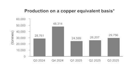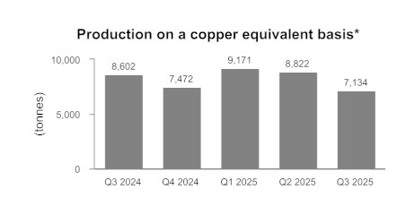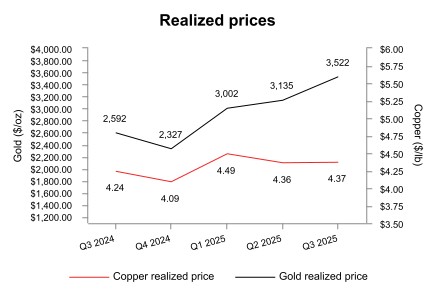 • While the majority of revenues continue to be derived from copper production, revenue from gold production represented more than 38% of total revenues in the third quarter of 2025.