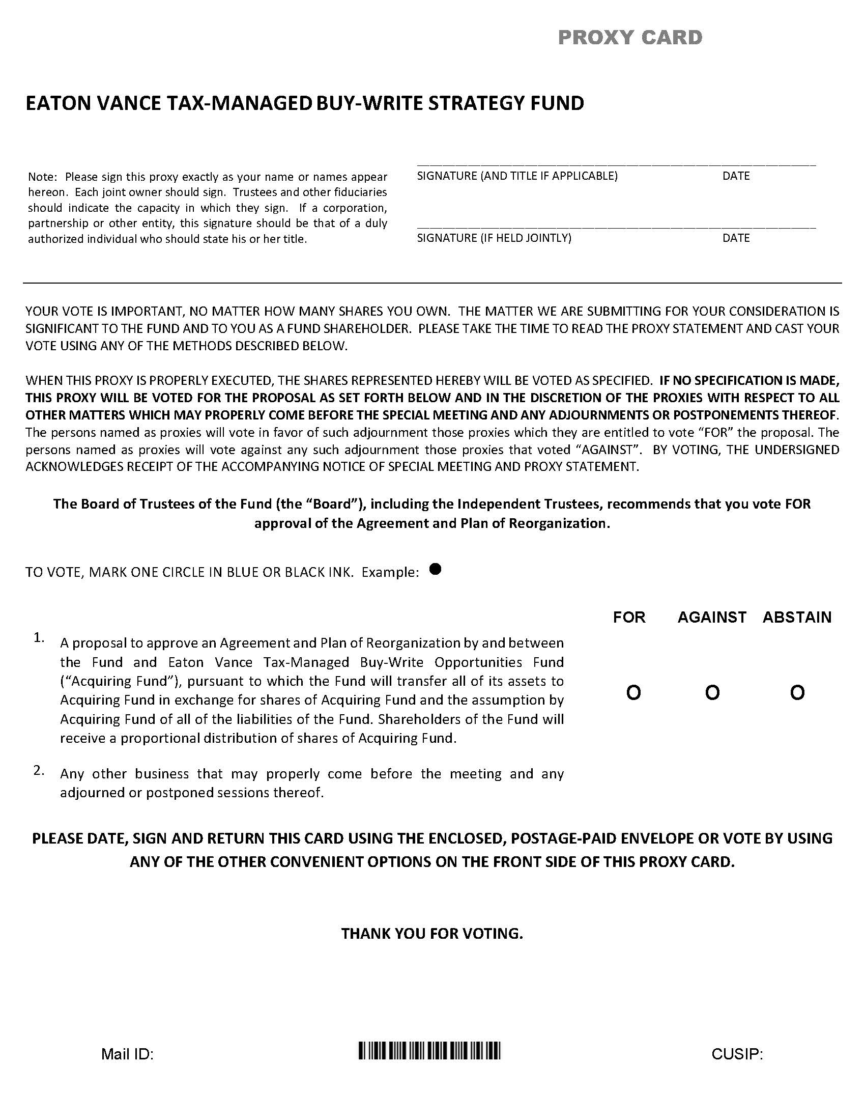 Regarding the Proposed Reorganization of Eaton Vance Tax-Managed Buy-Write Strategy Fund (“Fund”) with and into Eaton Vance Tax-Managed Buy-Write Opportunities Fund