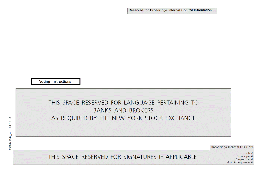 Enve1lo2pe # # 0000421644_4 R1.0.1.18 Broadridge Internal Use Only THIS SPACE RESERVED FOR SIGNATURES IF APPLICABLE P99999Jo-0b1#0 Sequ1e5nce # of # S#eqOueFnce ## THIS SPACE RESERVED FOR LANGUAGE PERTAINING TO BANKS AND BROKERS AS REQUIRED BY THE NEW YORK STOCK EXCHANGE Voting Instructions Reserved for Broadridge Internal Control Information