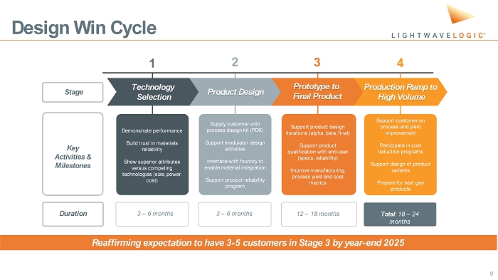 Enabling AI Connectivity Ecosystem 7 Optical Transceiver Suppliers Silicon Photonics Engines (PICs) & Foundries Polymer Modulators Hyperscale AI Data Center Note: Companies represent examples of established entities per segment only.