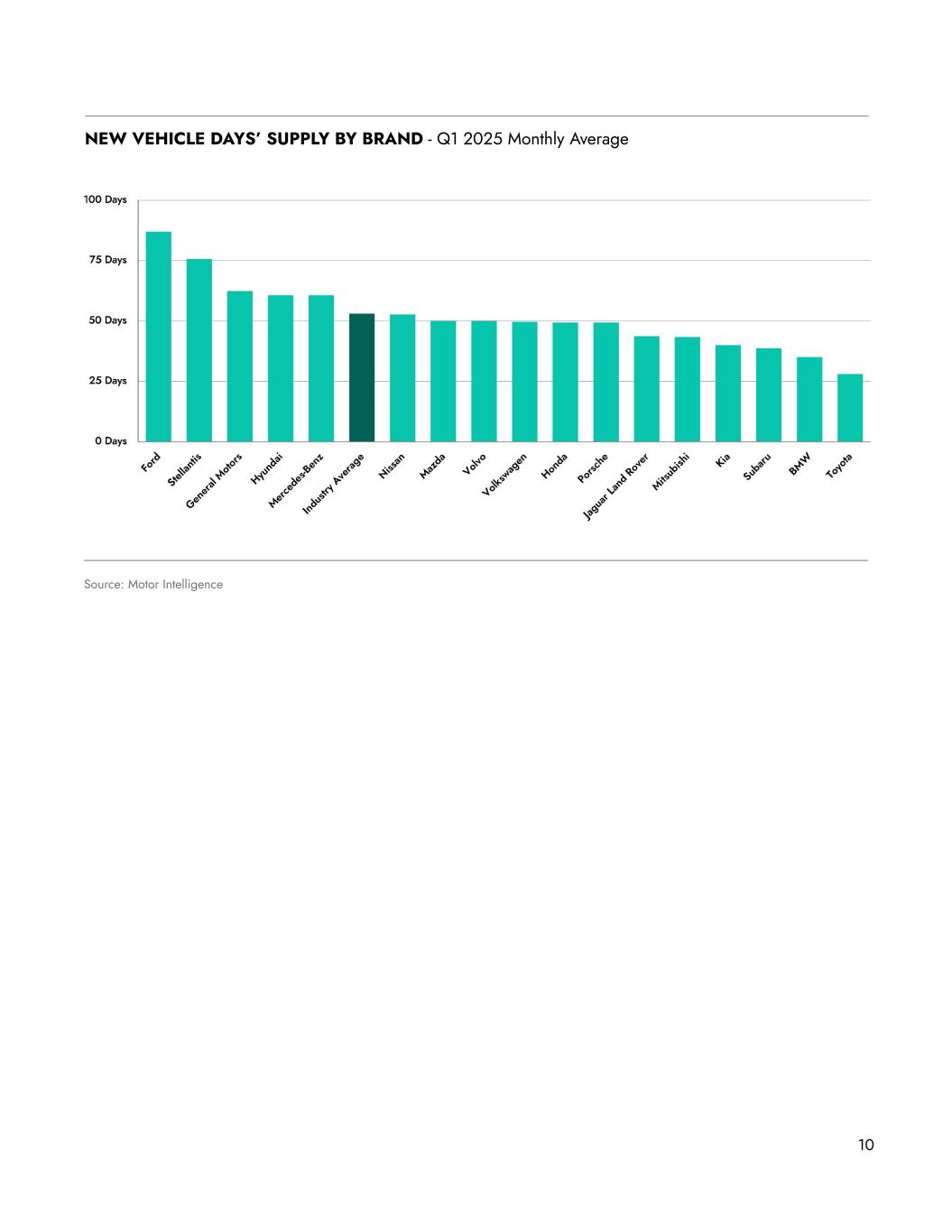 Source: Motor Intelligence 10 NEW VEHICLE DAYS’ SUPPLY BY BRAND - Q1 2025 Monthly Average