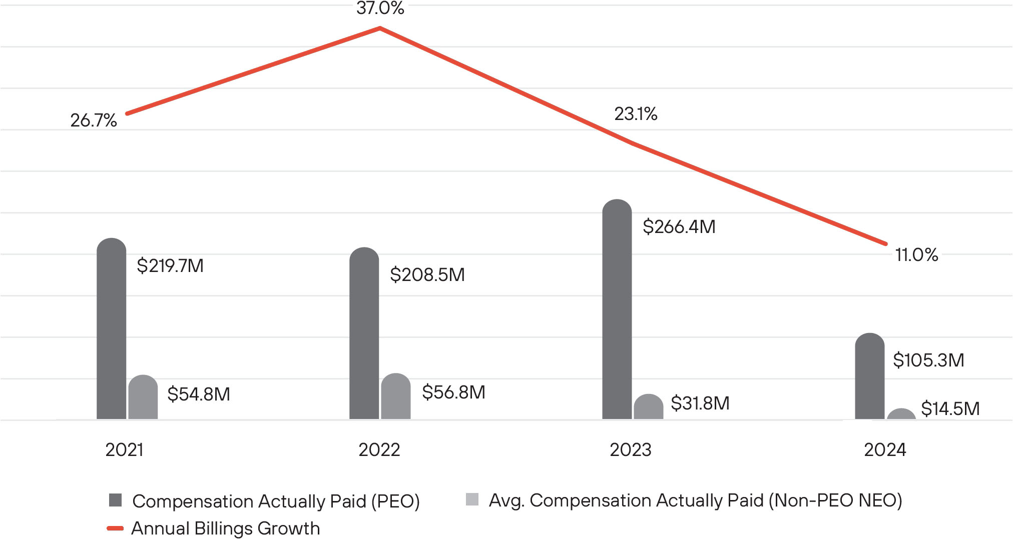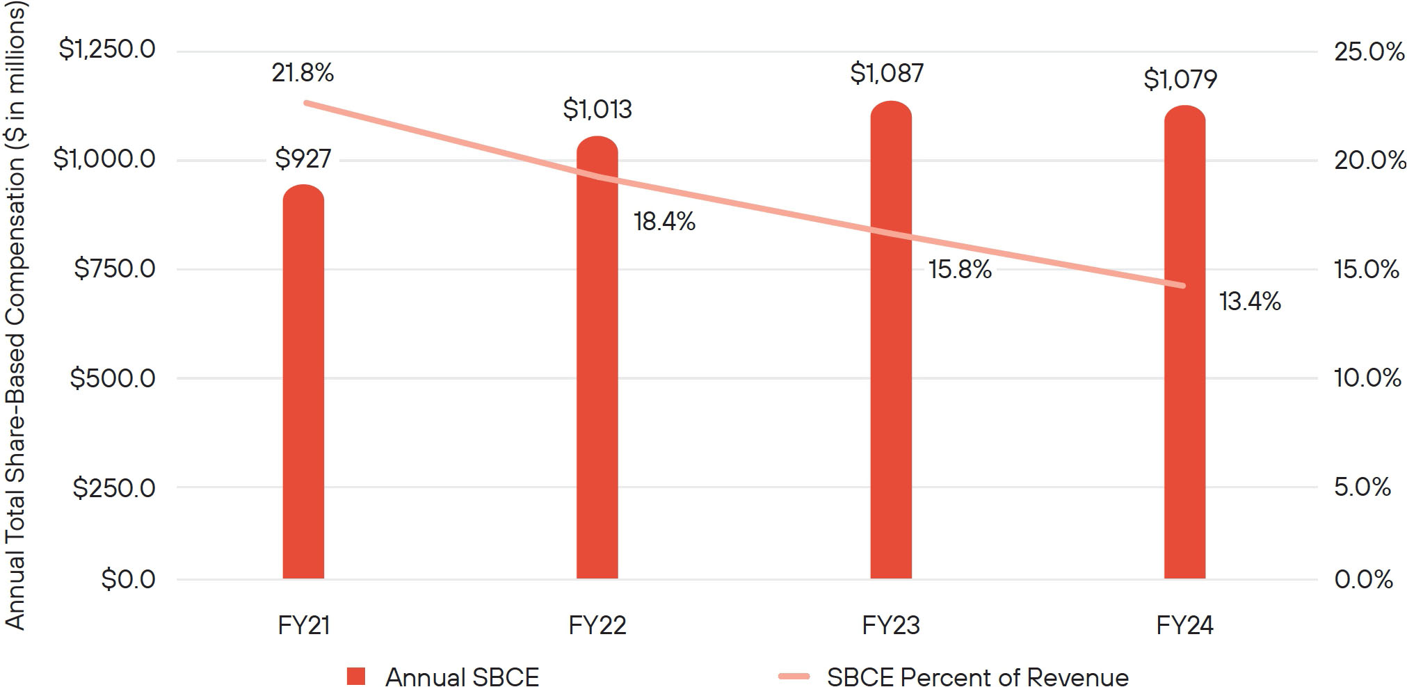 | ● | Updating the financial measures used in performance stock unit awards to annual NGS ARR and annual non-GAAP earnings per diluted share, further aligning executive compensation to the success of our Platformization strategy and focus on profitability, including for the remaining performance periods in the fiscal 2023 and fiscal 2024 performance stock unit awards. |