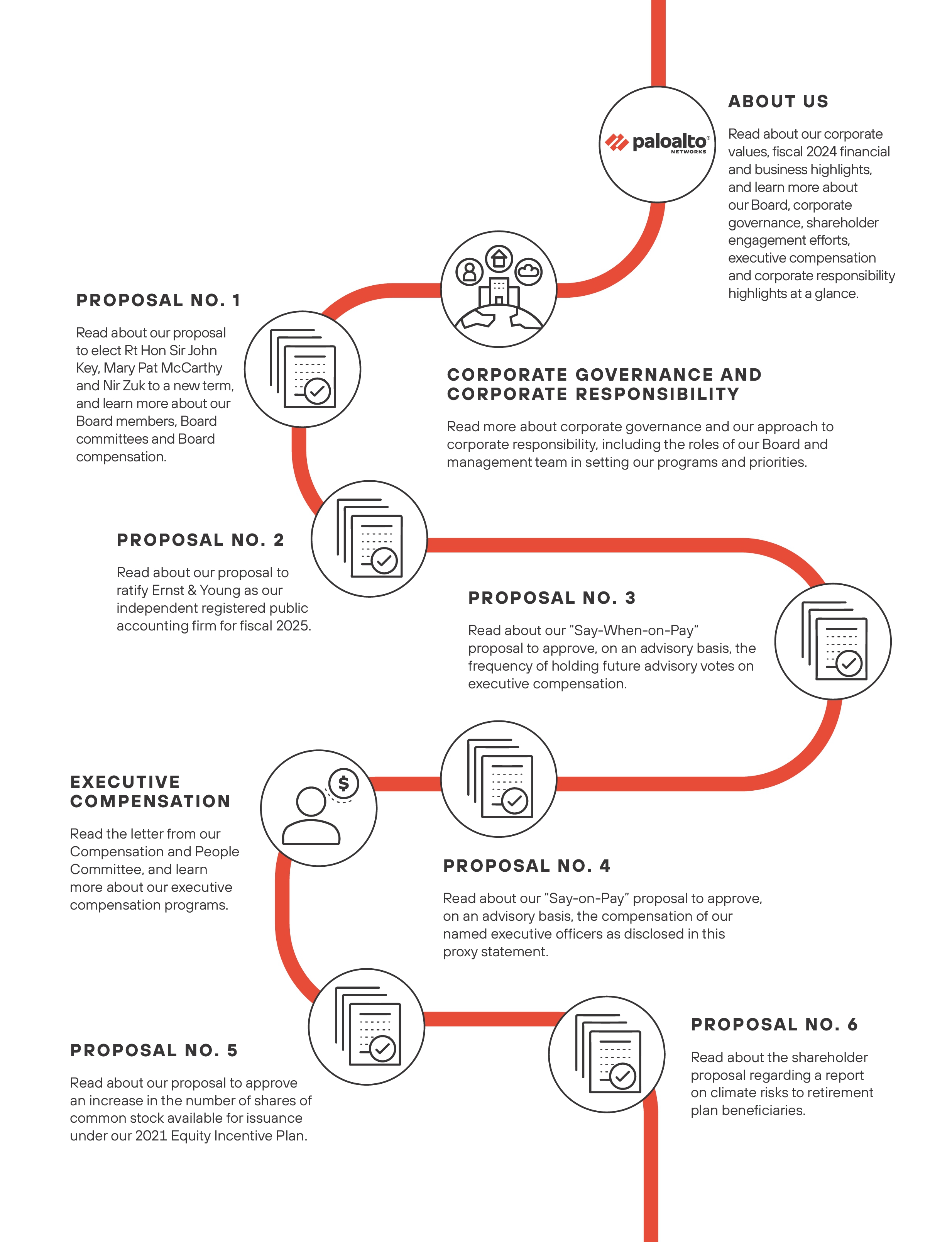 You are cordially invited to attend the 2024 Annual Meeting of Shareholders of Palo Alto Networks, Inc. to be held on Tuesday, December 10, 2024 at 11:00 A.M., Pacific Time.