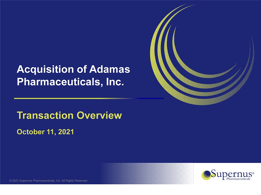 © 2021 Supernus Pharmaceuticals, Inc. All Rights Reserved. 1 Acquisition of Adamas Pharmaceuticals, Inc. Transaction Overview October 11, 2021