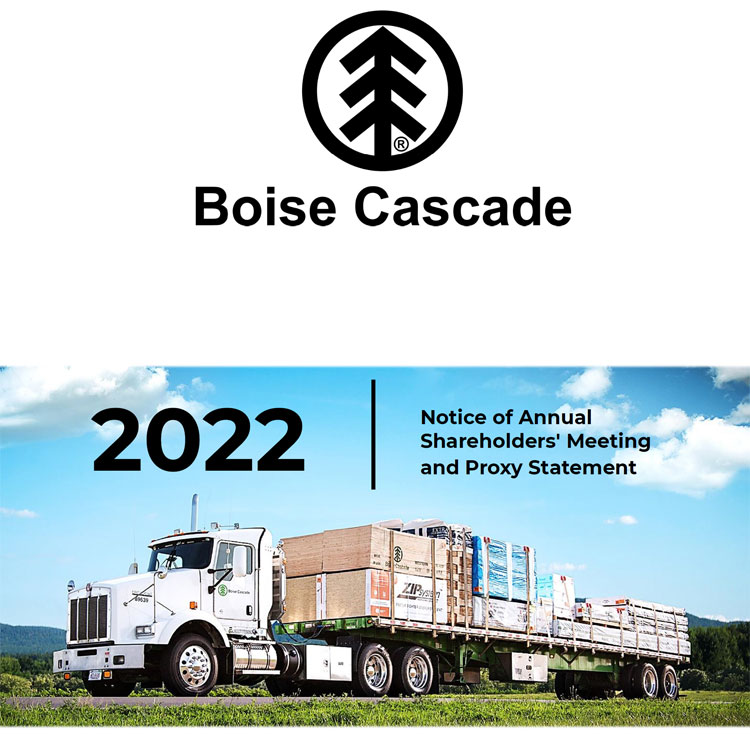 The 2022 virtual annual meeting of shareholders of Boise Cascade Company will be held at the above date and time online, for the following purposes: